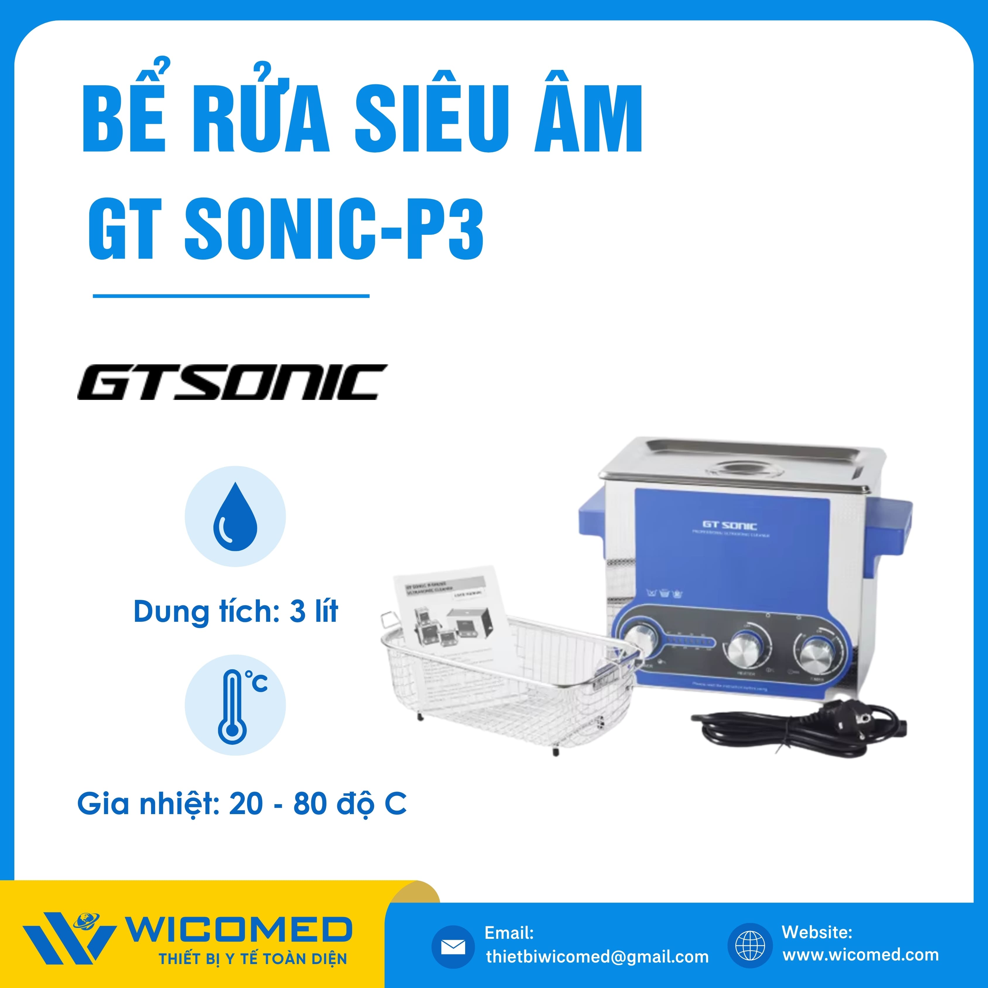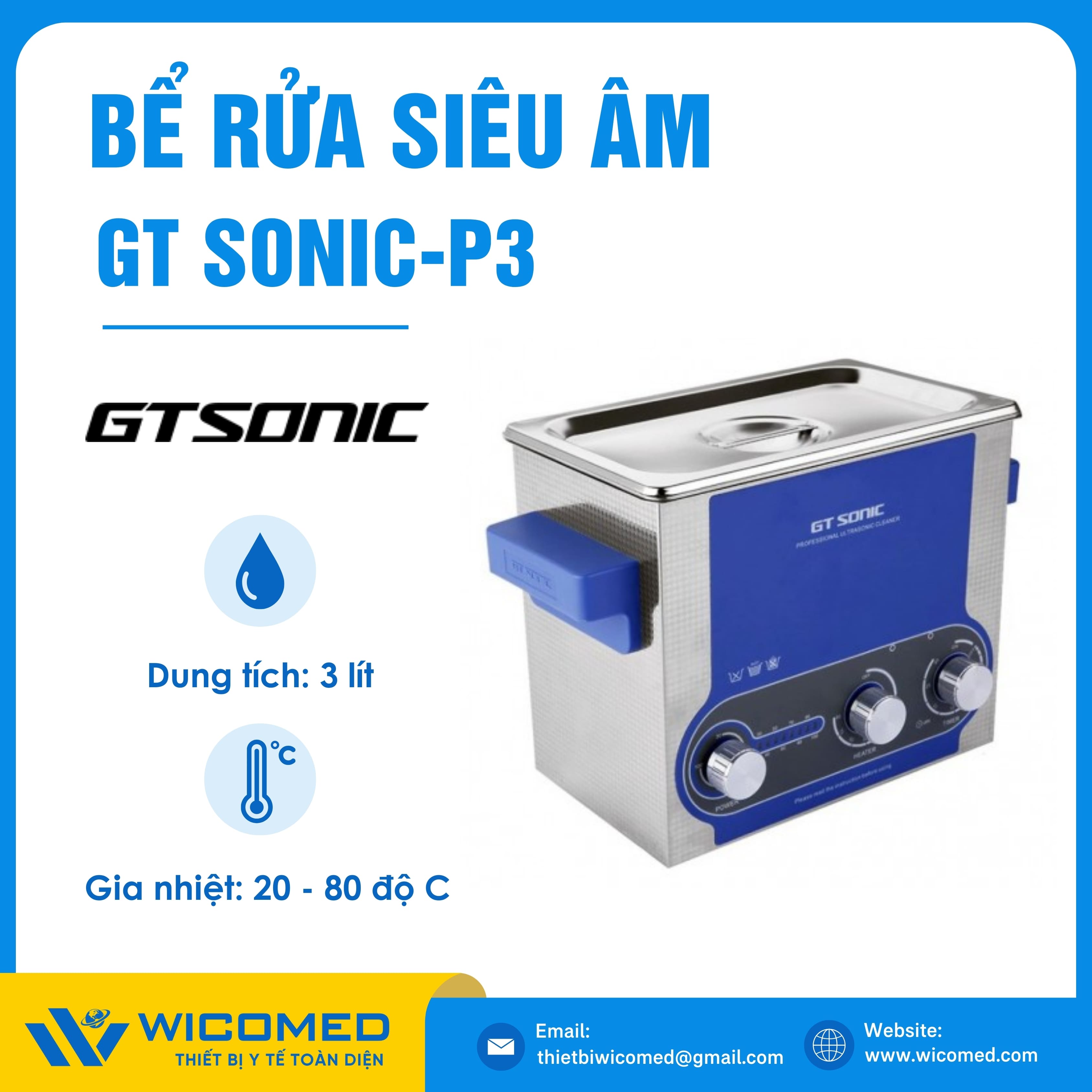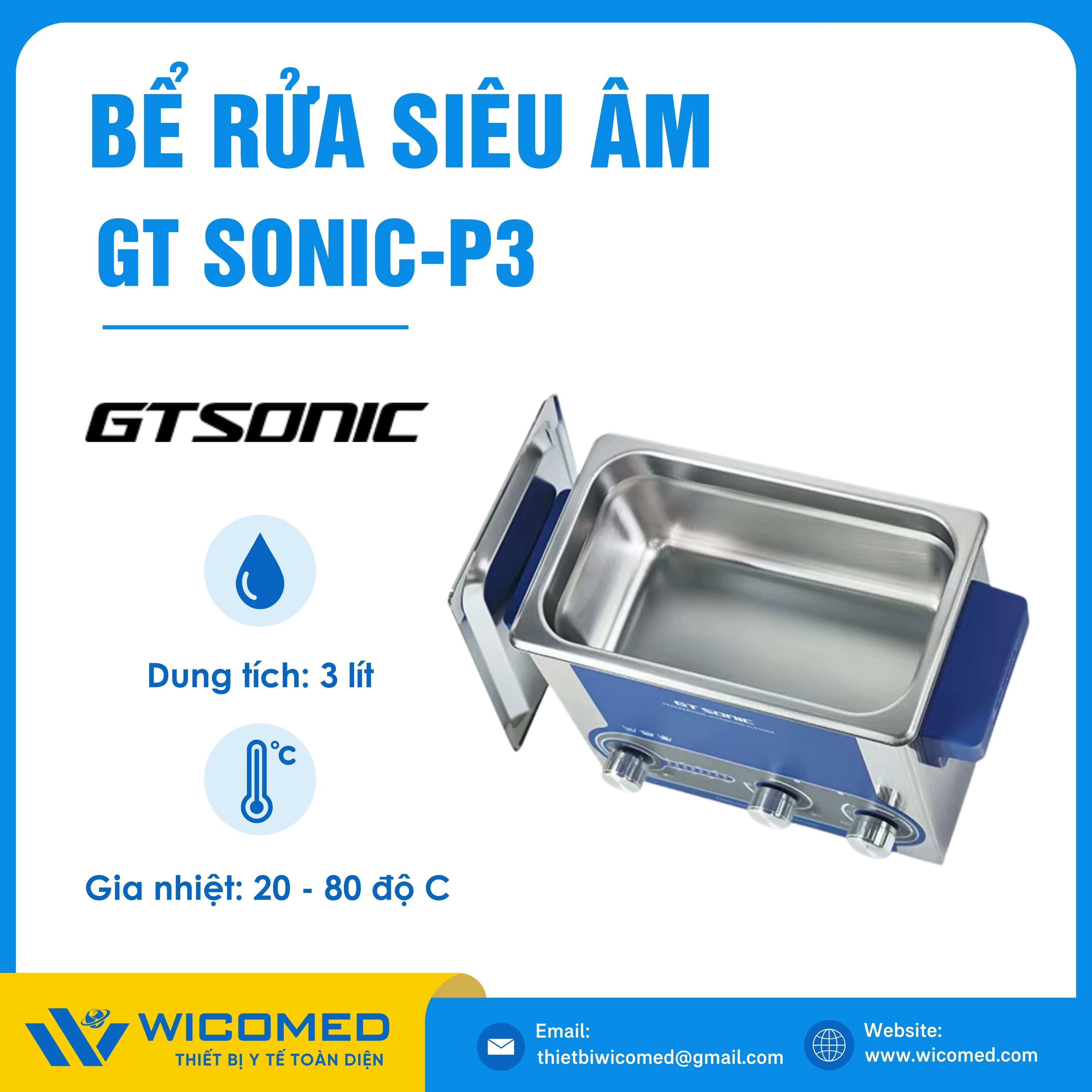 GT SONIC-P3🌟Bể rửa siêu âm có gia nhiệt với dung tích 3 Lít, tần số siêu âm 40kHz do hãng Gtsonic - Trung Quốc sản xuất. Là thiết bị tẩy rửa hoạt động bằng sóng siêu âm tần suất cao để loại bỏ các vết bẩn, mảng bám, giúp vệ sinh các vật dụng y tế, thí nghiệm,... Được nhập khẩu chính hãng bởi Wicomed. Bảo hành 12 tháng, cung cấp đầy đủ giấy tờ nhập khẩu đem đến uy tín và an tâm cho người sử dụng.