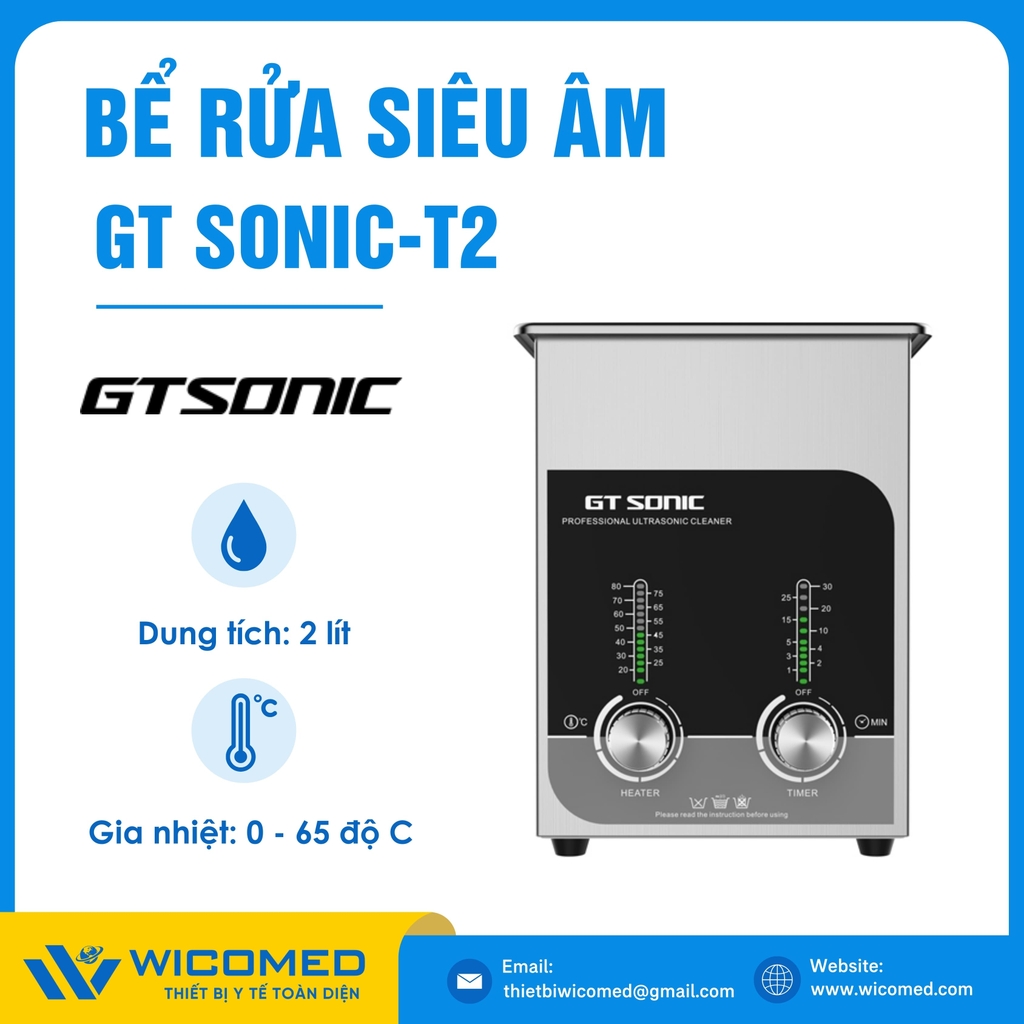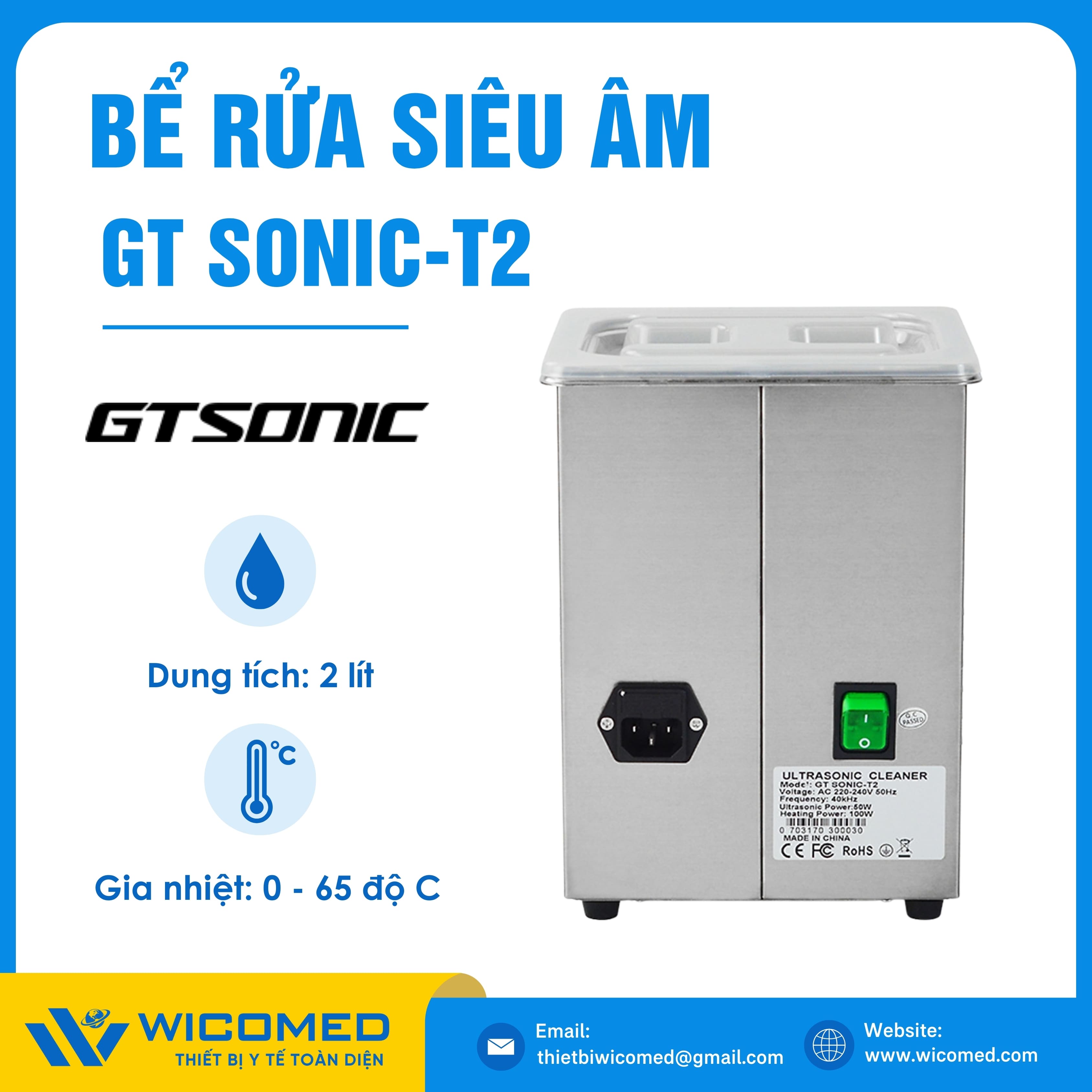GT SONIC-T2🌟Bể rửa siêu âm với dung tích 2 Lít, gia nhiệt tối đa 80 độ C do hãng Gtsonic - Trung Quốc sản xuất. Là thiết bị tẩy rửa hoạt động bằng sóng siêu âm tần suất cao để loại bỏ các vết bẩn, mảng bám, giúp vệ sinh các vật dụng y tế, thí nghiệm,... Được nhập khẩu chính hãng bởi Wicomed. Bảo hành 12 tháng, cung cấp đầy đủ giấy tờ nhập khẩu đem đến uy tín và an tâm cho người sử dụng.