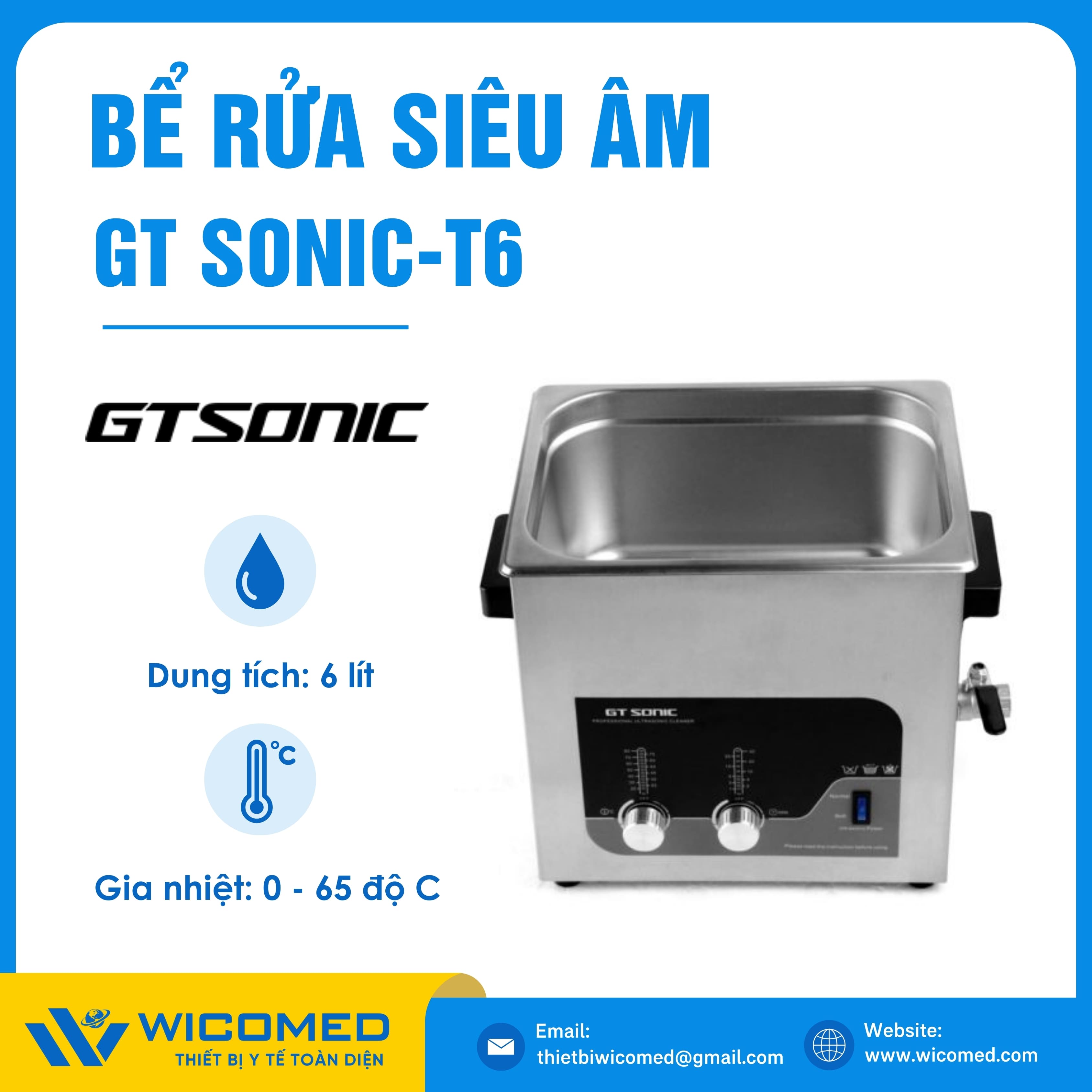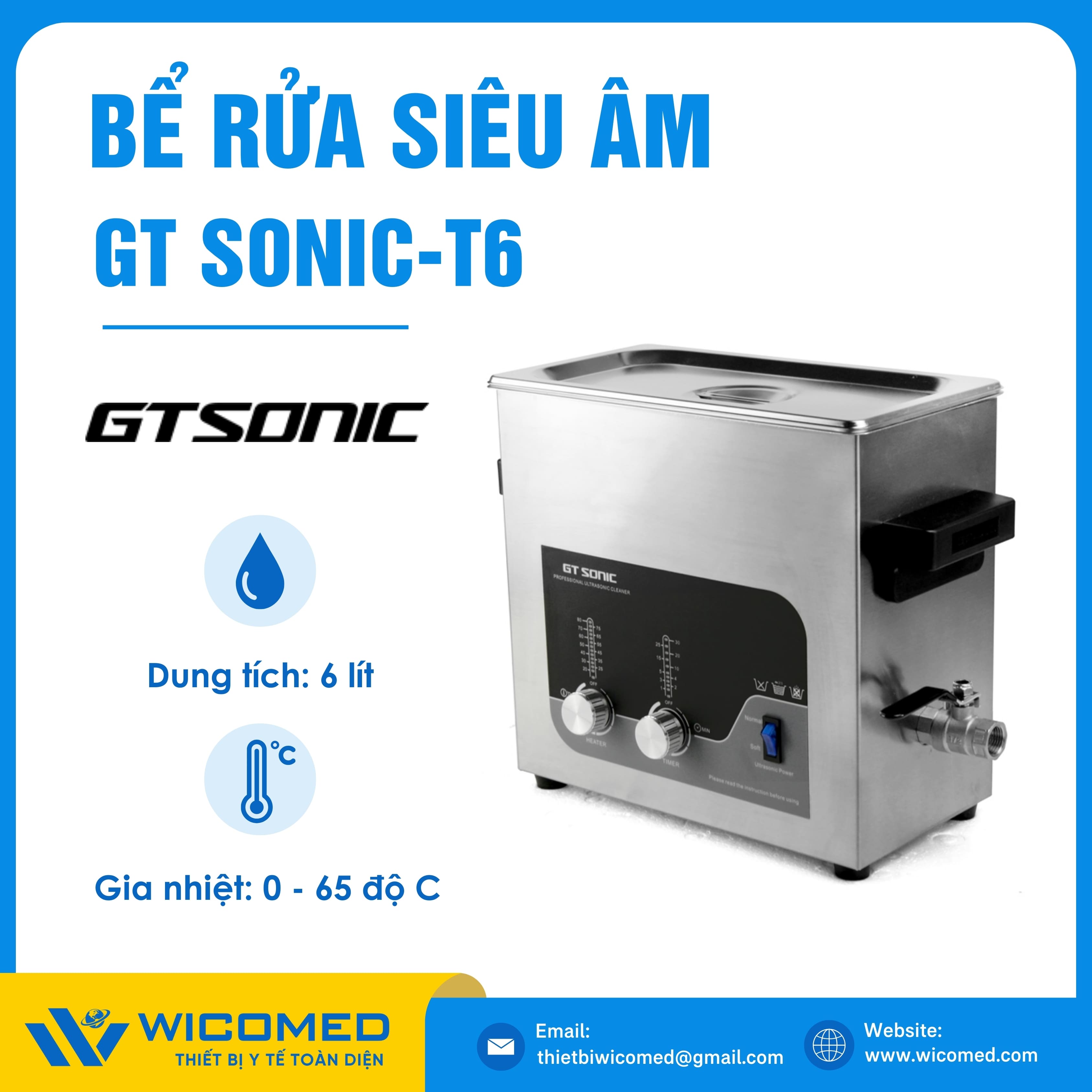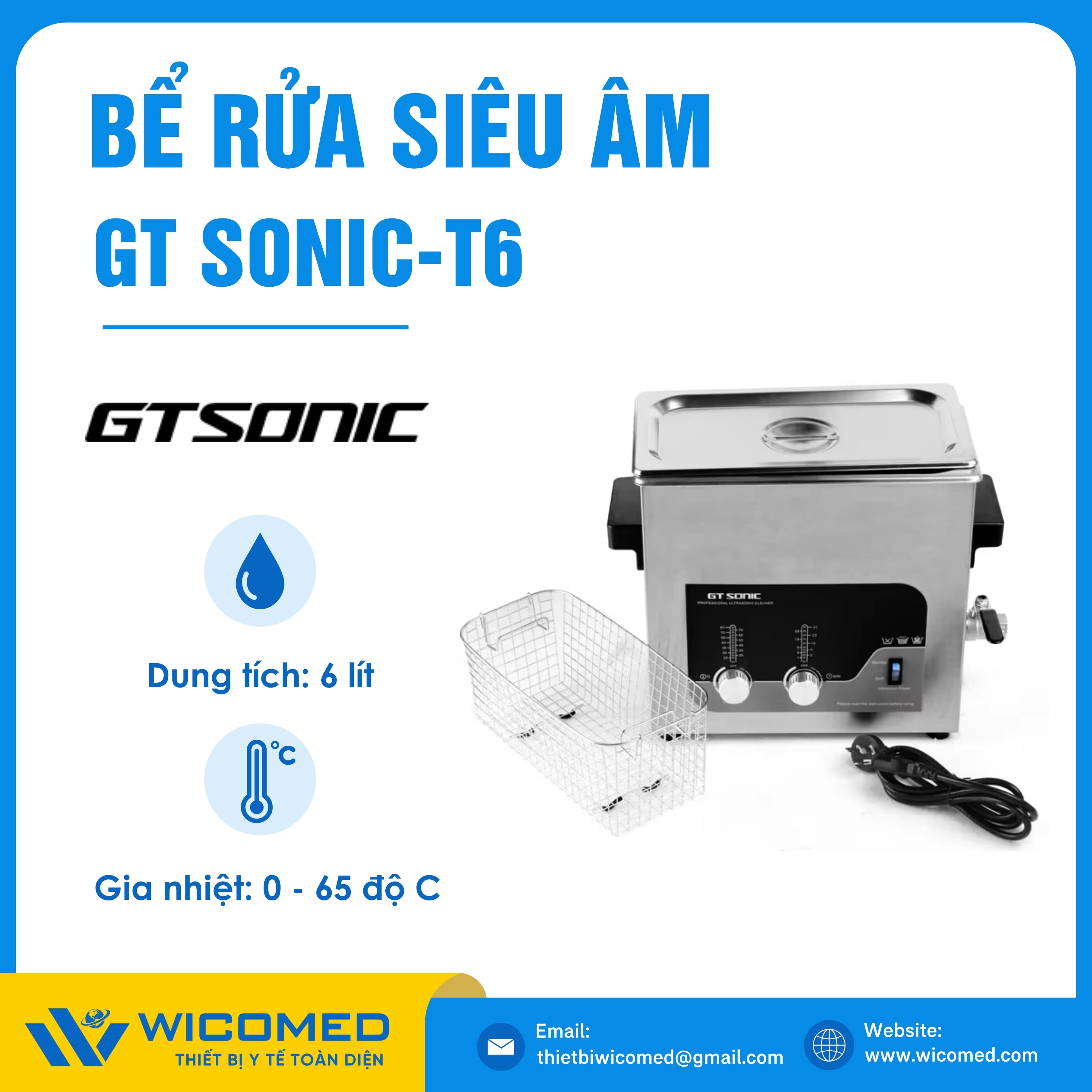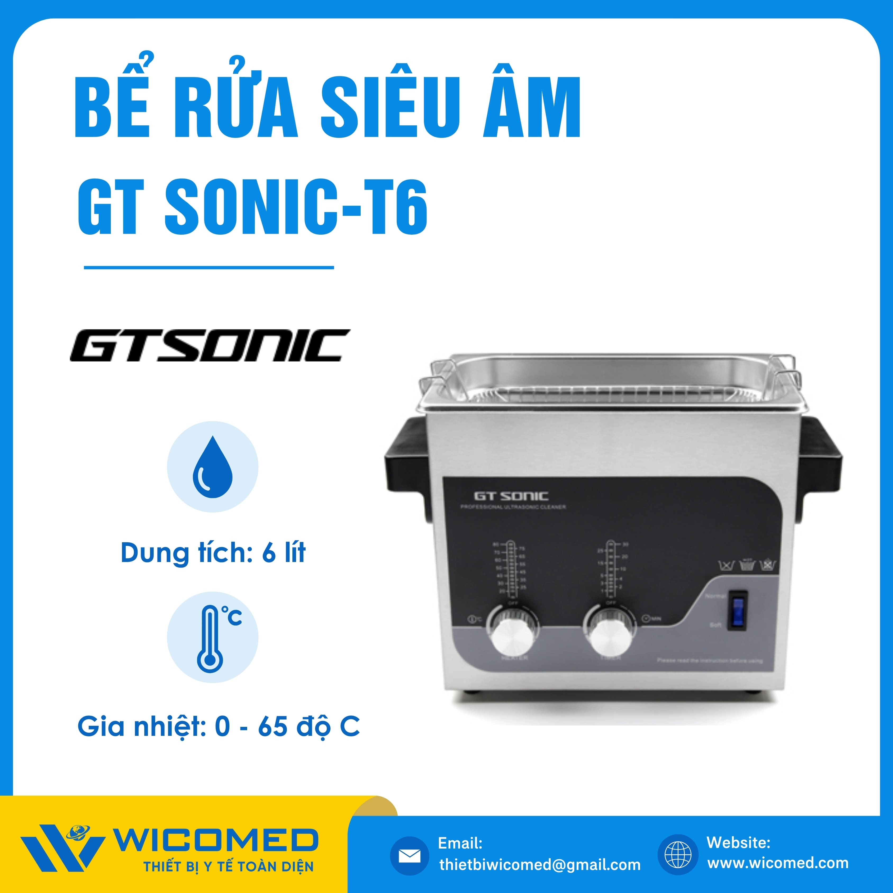 GT SONIC-T6🌟Bể rửa siêu âm với dung tích 6 Lít, gia nhiệt tối đa 80 độ C do hãng Gtsonic - Trung Quốc sản xuất. Là thiết bị tẩy rửa hoạt động bằng sóng siêu âm tần suất cao để loại bỏ các vết bẩn, mảng bám, giúp vệ sinh các vật dụng y tế, thí nghiệm,... Được nhập khẩu chính hãng bởi Wicomed. Bảo hành 12 tháng, cung cấp đầy đủ giấy tờ nhập khẩu đem đến uy tín và an tâm cho người sử dụng.