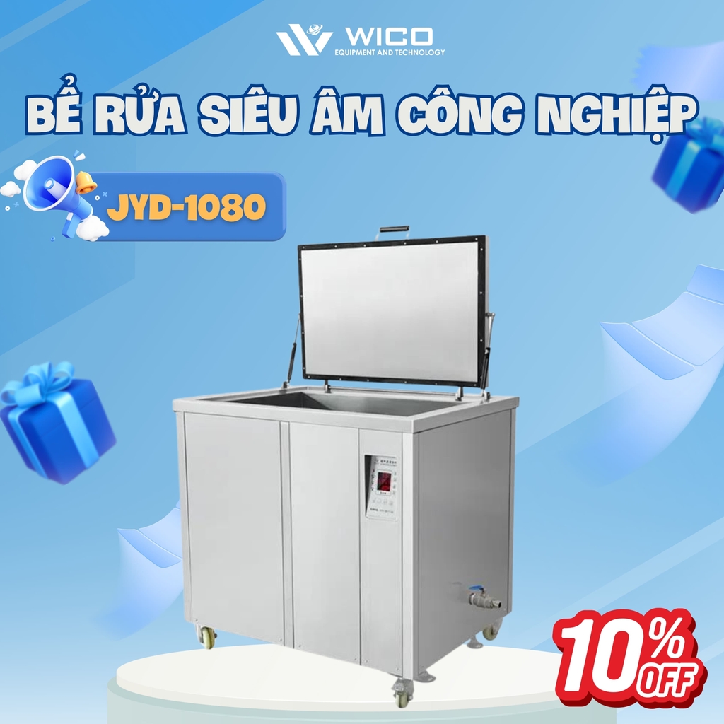 JYD-1080🌟Bể rửa siêu âm công nghiệp với dung tích 108 Lít, tần số siêu âm đa dạng lựa chọn 28/40/80/100/200kHz do hãng Jiayuanda - Trung Quốc sản xuất. Là thiết bị tẩy rửa hoạt động bằng sóng siêu âm tần suất cao để loại bỏ các vết bẩn, mảng bám, giúp vệ sinh các vật dụng y tế, thí nghiệm,... Được nhập khẩu chính hãng bởi Wicomed. Bảo hành 12 tháng, cung cấp đầy đủ giấy tờ nhập khẩu đem đến uy tín và an tâm cho người sử dụng.