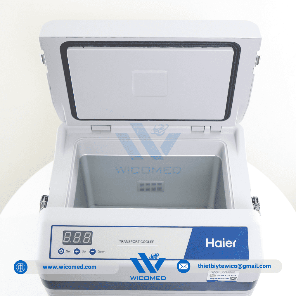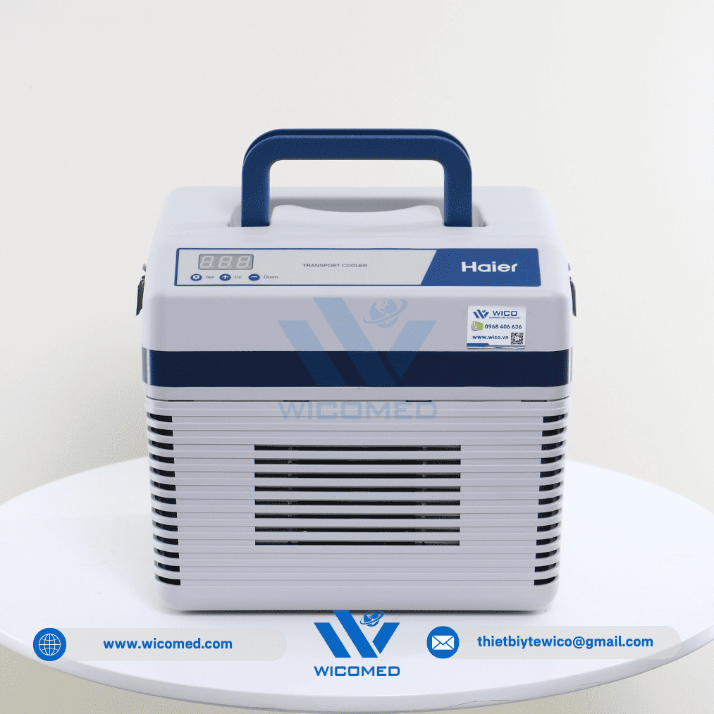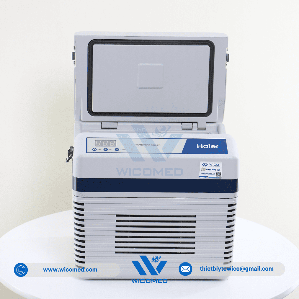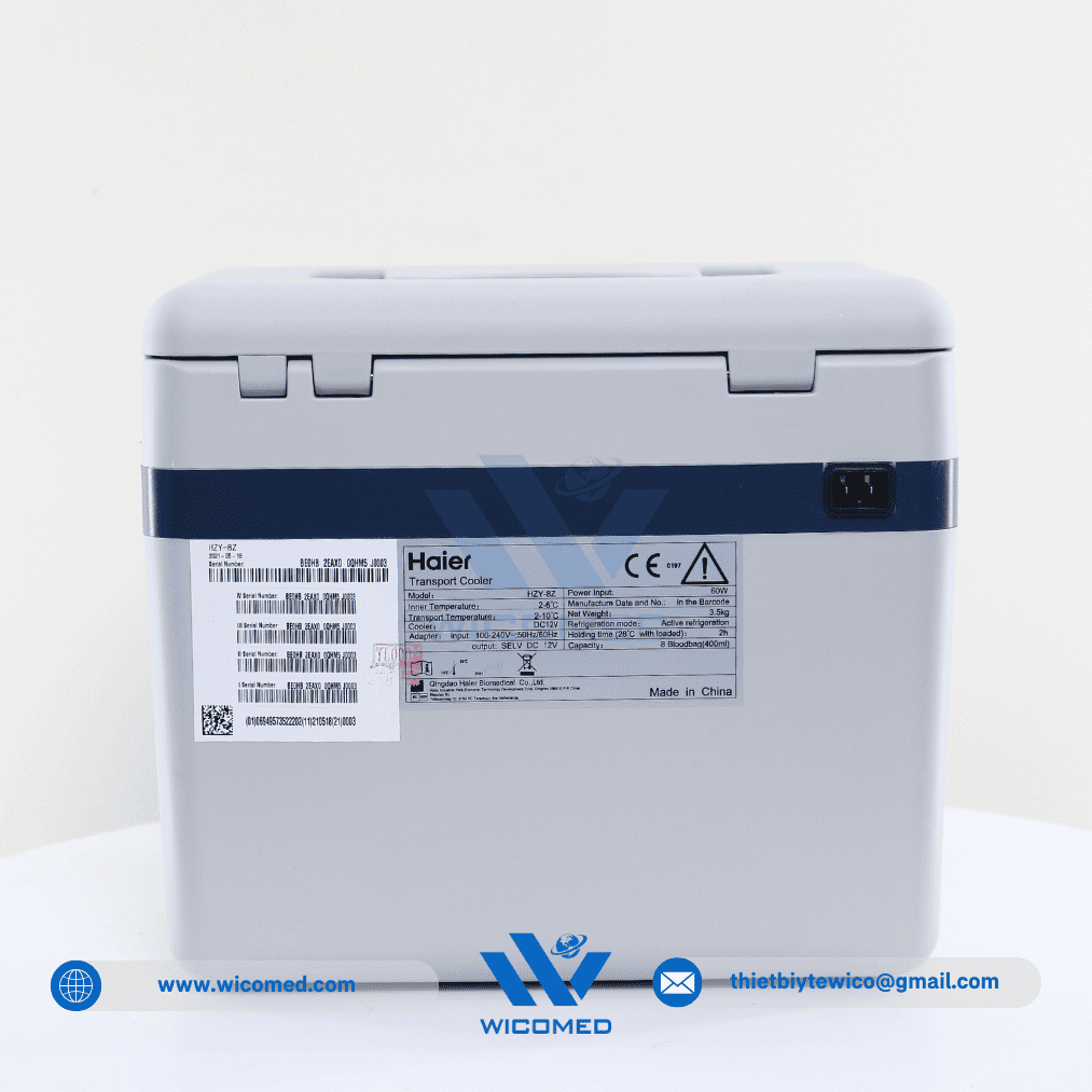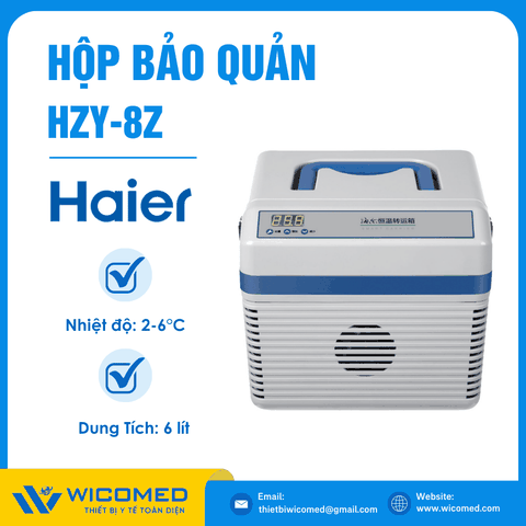 - Hộp bảo quản vận chuyển mẫu Haier HZY-8Z do hãng Haier BioMedical thiết kế ché tạo. Với cơ chế làm lạnh chủ động sử dụng nguồn điện 220V hoặc nguồn điện 12V DC trên ô tô. Đặc biệt phù hợp làm hộp vận chuyển Vacxin, chứa mẫu hiện trường được thiết kế cho việc lưu trữ ổn định nhiệt độ cho các sản phẩm sinh học như máu và các chế phẩm máu, thuốc, các mẫu lam kính hay các thuốc thử trong quá trình vận chuyển tới hiện trường.