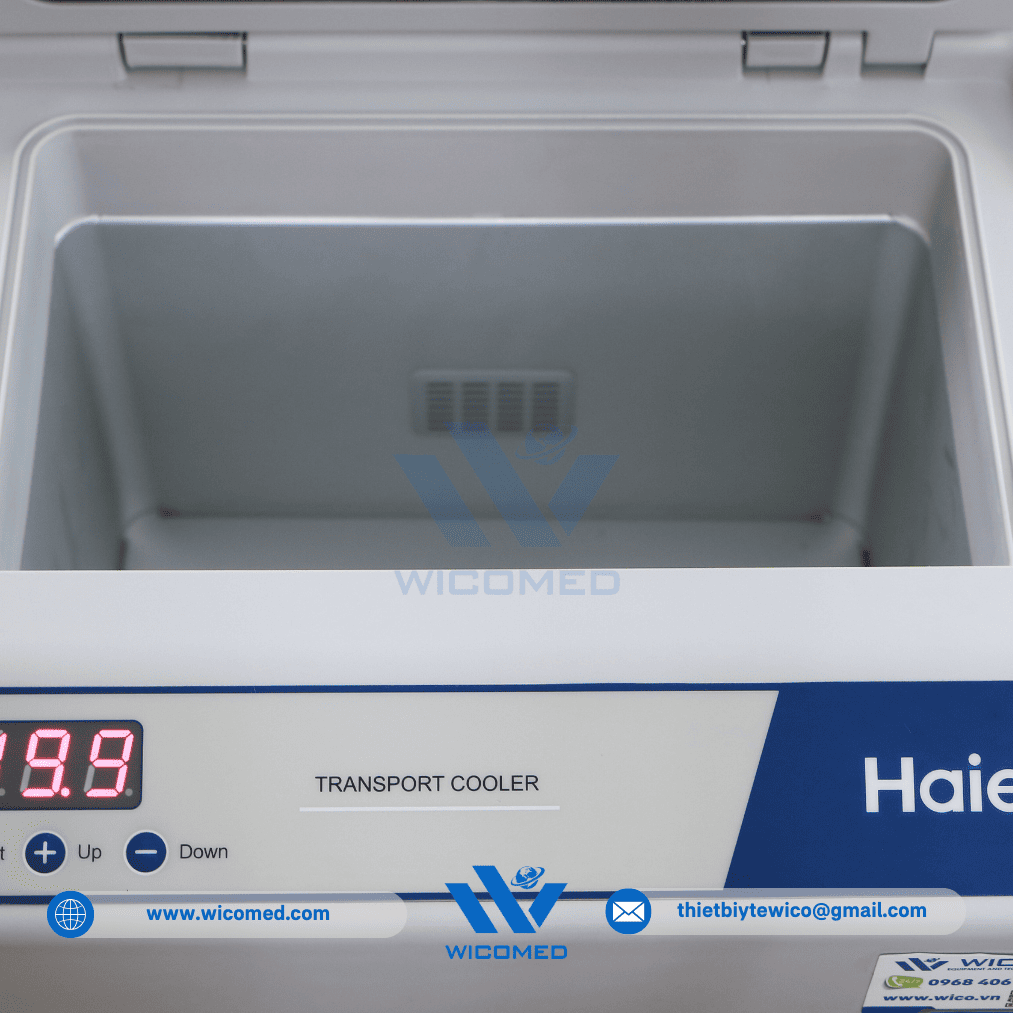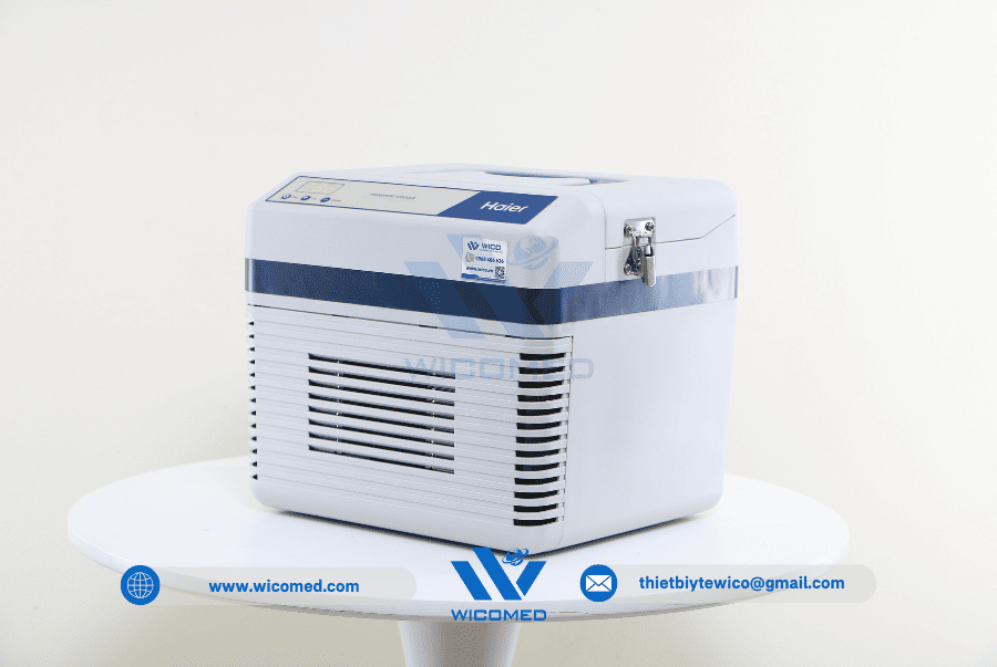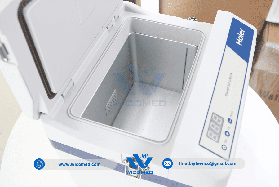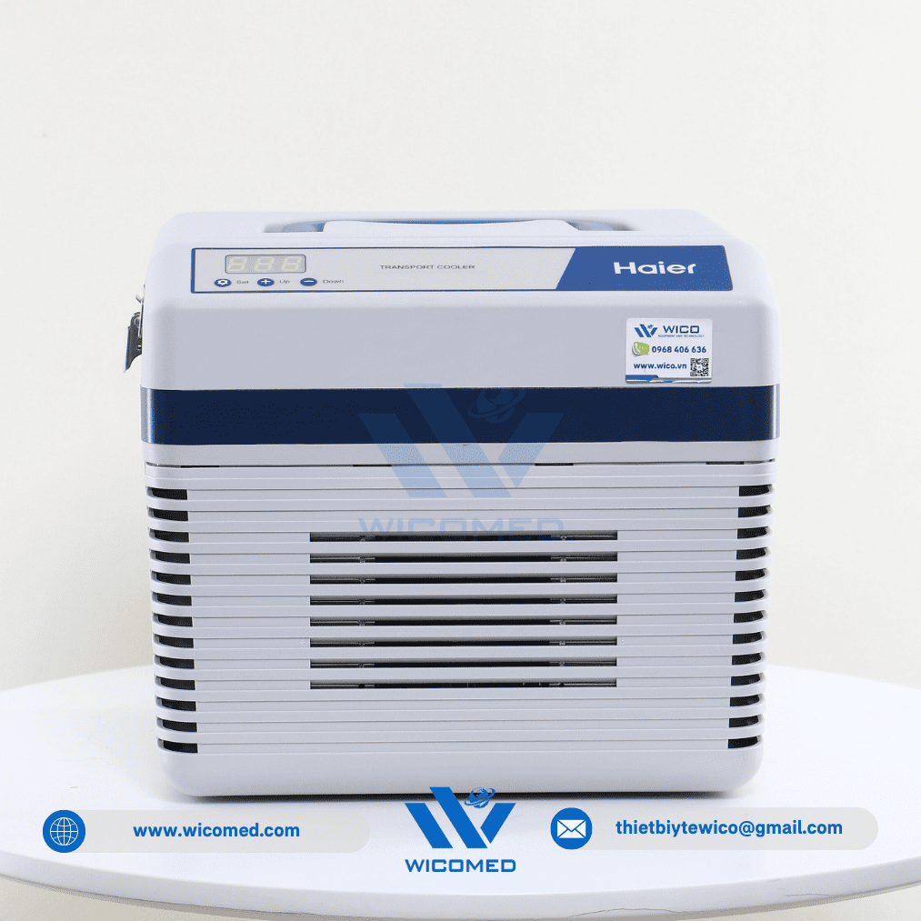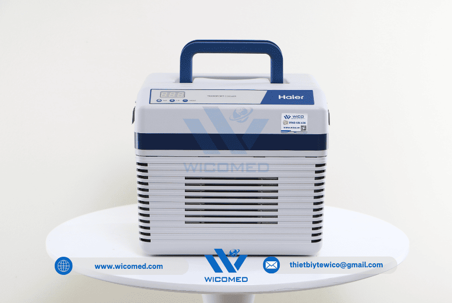 - Hộp bảo quản vận chuyển mẫu Haier HZY-8Z do hãng Haier BioMedical thiết kế ché tạo. Với cơ chế làm lạnh chủ động sử dụng nguồn điện 220V hoặc nguồn điện 12V DC trên ô tô. Đặc biệt phù hợp làm hộp vận chuyển Vacxin, chứa mẫu hiện trường được thiết kế cho việc lưu trữ ổn định nhiệt độ cho các sản phẩm sinh học như máu và các chế phẩm máu, thuốc, các mẫu lam kính hay các thuốc thử trong quá trình vận chuyển tới hiện trường.