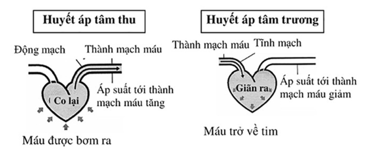 + Huyết áp tâm thu (huyết áp tối đa) là áp lực của máu lên động mạch khi tim co bóp. Con số này được chú ý nhiều hơn vì thể hiện được khả năng bơm máu của tim cung cấp đến các cơ quan: mức bình thường từ 90 - 139 mm Hg