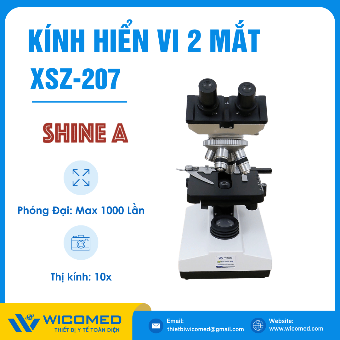 XSZ-207🌟Kính hiển vi 2 mắt phóng đại lên đến 1000 lần do hãng Shine A - Trung Quốc sản xuất. Là thiết bị để phóng đại hình ảnh của các đối tượng nhỏ và không thể nhìn thấy bằng mắt thường như tế bào, vi khuẩn, vi sinh vật, các phần tử cấu trúc. Được nhập khẩu chính hãng bởi Wicomed. Bảo hành 12 tháng, cung cấp đầy đủ giấy tờ nhập khẩu đem đến uy tín và an tâm cho người sử dụng.