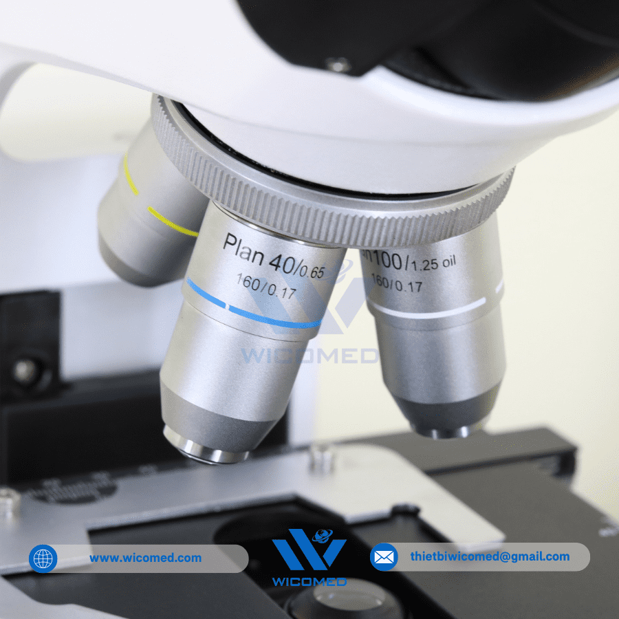 ✅ Kính được trang bị vật kính 4X -10X - 40X và 100X chuẩn Plan cho hình ảnh chân thực và sắc nét.
