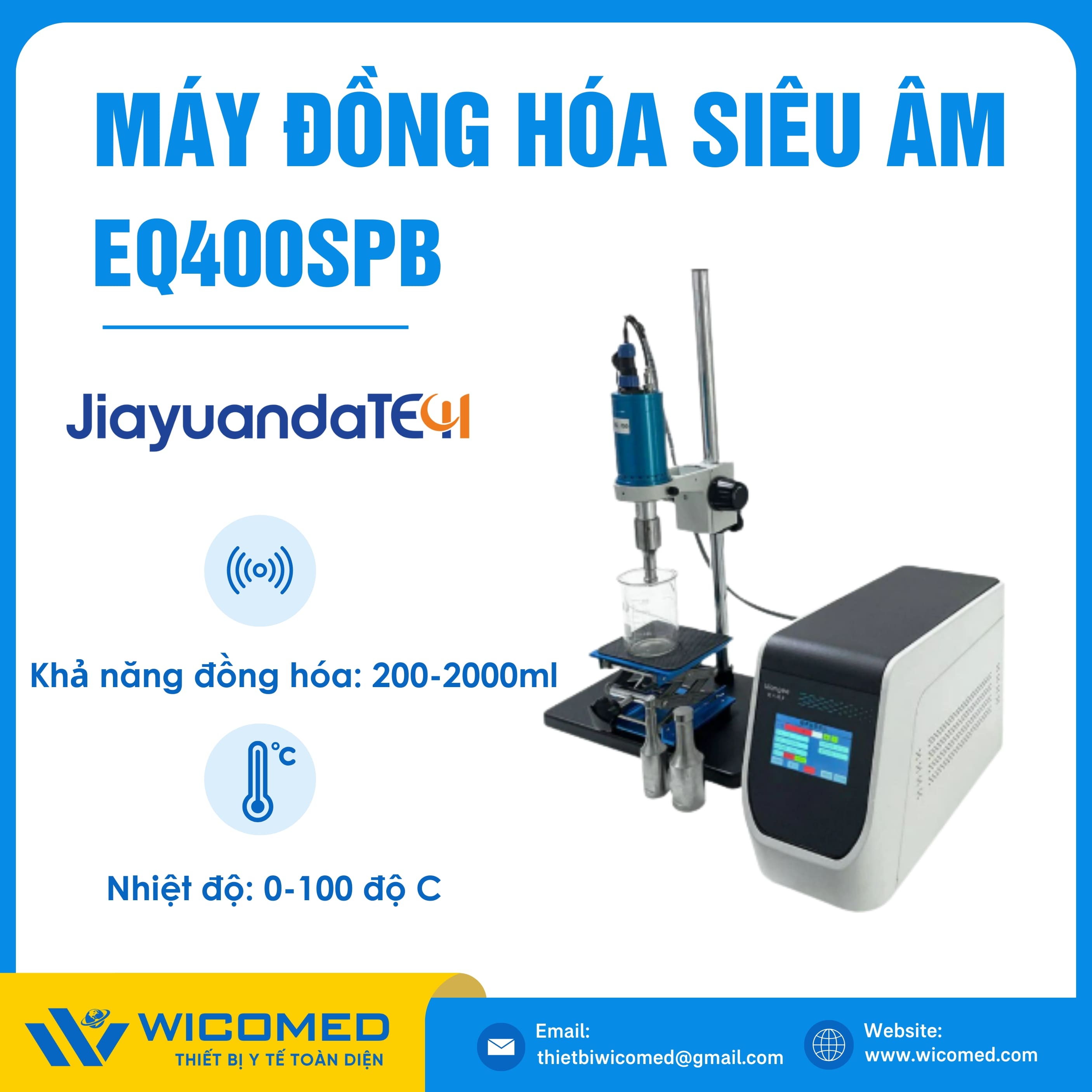 EQ400SPB 🌟 Máy đồng hóa mẫu bằng sóng siêu âm có khả năng đồng hóa 200-2000ml (Tùy chọn đầu đồng hóa) do hãng Jiayuanda - Trung Quốc sản xuất. Là thiết bị dùng sóng âm tần số cao để phá vỡ, phân tán hoặc nhũ tương hóa các chất, tạo ra hỗn hợp đồng nhất, ứng dụng rộng rãi trong sinh học, dược phẩm, hóa học, và công nghệ thực phẩm. Được nhập khẩu chính hãng bởi Wicomed. Bảo hành 12 tháng, cung cấp đầy đủ giấy tờ nhập khẩu đem đến uy tín và an tâm cho người sử dụng.