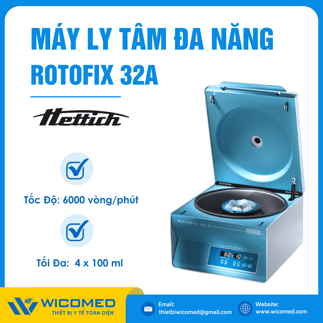 Rotofix 32A🌟Máy ly tâm tốc độ 6000 vòng/phút do hãng Hettich-Đức sản xuất. Là thiết bị thực hiện quá trình phân ly dựa vào trường lực ly tâm để phân tách hỗn hợp chất có khối lượng riêng khác nhau. Được nhập khẩu chính hãng bởi Wicomed. Bảo hành 12 tháng, cung cấp đầy đủ giấy tờ nhập khẩu đem đến uy tín và an tâm cho người sử dụng.