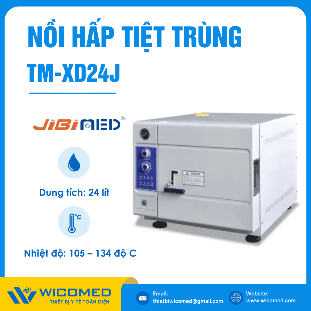 TM-XD24J🌟 Nồi hấp tiệt trùng để bàn dung tích 24 lít do hãng Jibimed - Trung Quốc sản xuất. Là thiết bị khử trùng tác nhân gây truyền nhiễm trên dụng cụ, thiết bị y tế, quần áo phẫu thuật,... Ứng dụng rộng rãi trong bệnh viện, phòng khám, trạm y tế,... Được nhập khẩu chính hãng bởi Wicomed. Bảo hành 12 tháng, cung cấp đầy đủ giấy tờ nhập khẩu đem đến uy tín và an tâm cho người sử dụng.