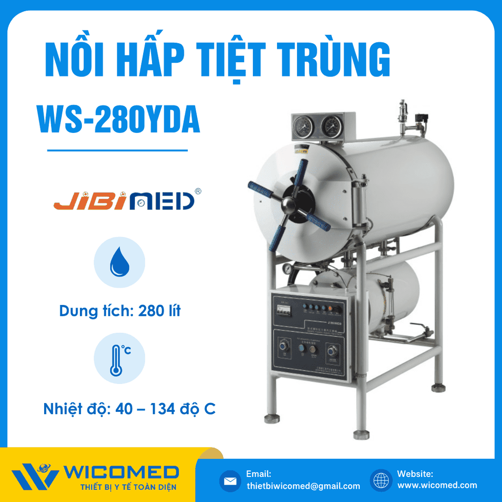 WS-280YDA ⭐Nồi hấp nằm ngang do hãng Jibimed - Trung Quốc thiết kế chế tạo. Với dung tích 280 lít cho phép điều chỉnh nhiệt độ: 40 ~ 134 độ C và cài đặt thời gian sấy: 0- 60 phút. Nhập Khẩu và Phân Phối bởi Wico Việt Nam. Cam kết 100% sản phẩm chính hãng. Bảo hành lên tới 12 tháng. Hỗ trợ giao hàng toàn quốc.