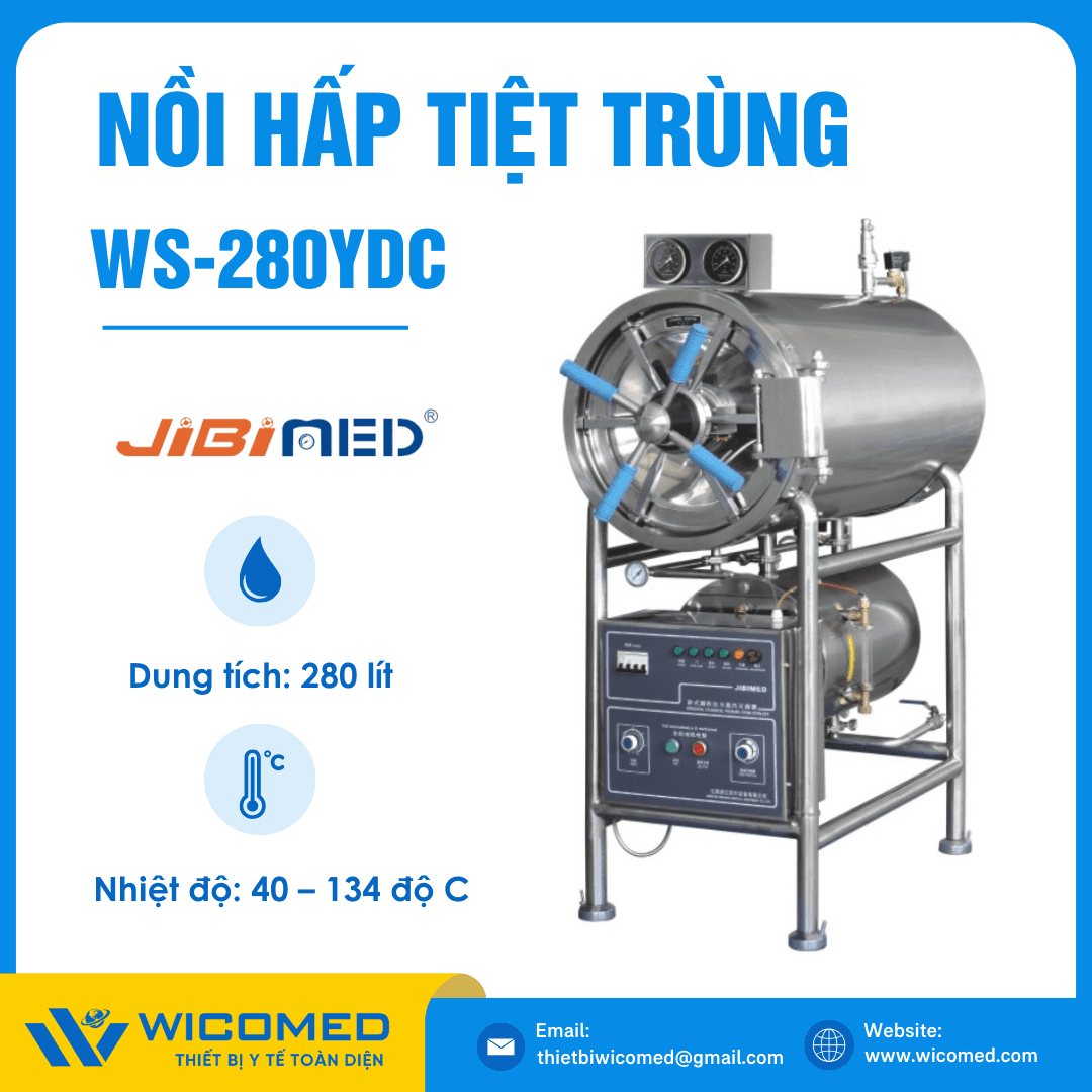 WS-280YDC⭐Nồi hấp tiệt trùng nằm ngang hoàn toàn bằng inox do hãng Jibimed - Trung Quốc thiết kế chế tạo. Với dung tích 280 lít, có chức năng bảo vệ tự động khi vượt quá nhiệt độ hoặc quá áp, có van an toàn. Nhập Khẩu và Phân Phối bởi Wico Việt Nam. Cam kết 100% sản phẩm chính hãng. Bảo hành lên tới 12 tháng. Hỗ trợ giao hàng toàn quốc.