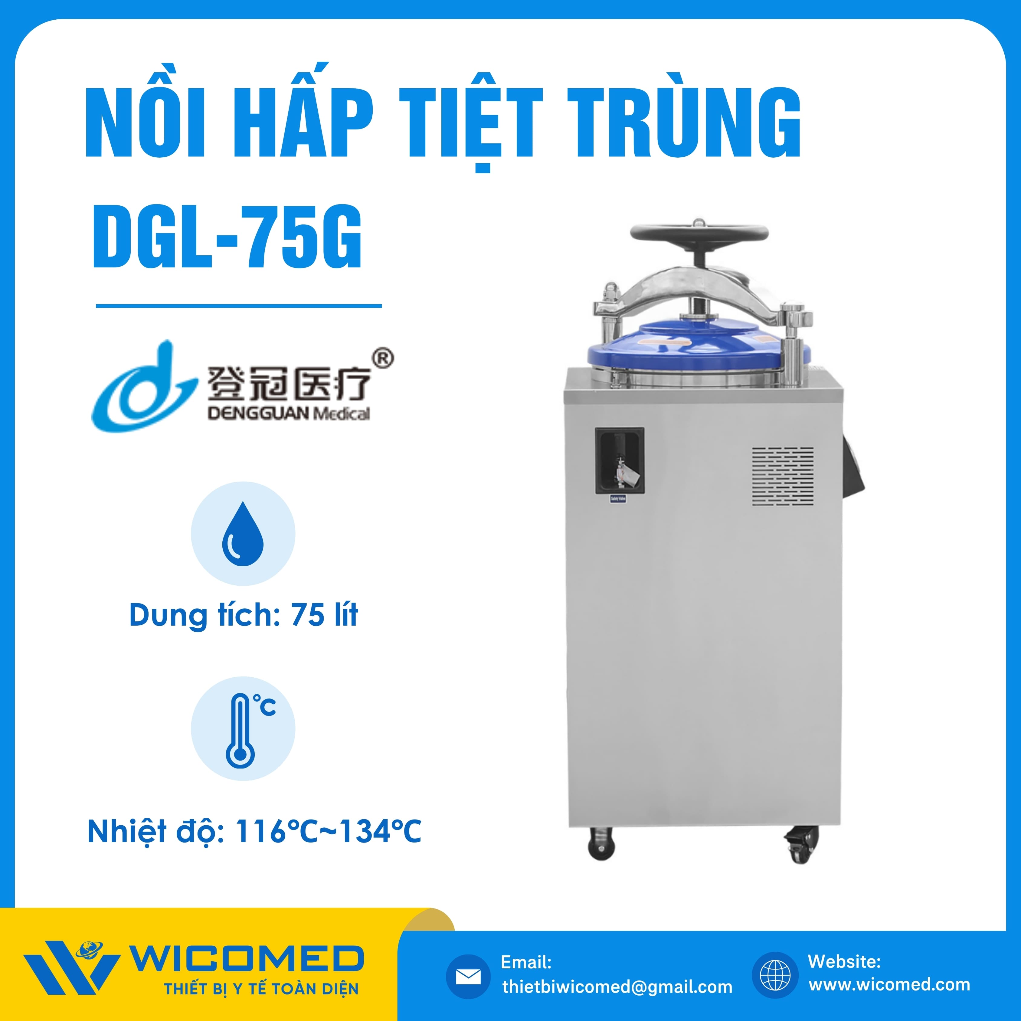 DGL-75G 🌟 Nồi hấp tiệt trùng kiểu đứng có sấy với dung tích 75 Lít, nhiệt độ tiệt trùng tối đa lên tới 134 độ C do hãng Dengguan - Trung Quốc sản xuất. Là thiết bị khử trùng tác nhân gây truyền nhiễm trên dụng cụ, thiết bị y tế, quần áo phẫu thuật,... Ứng dụng rộng rãi trong bệnh viện, phòng khám, trạm y tế,... Được nhập khẩu chính hãng bởi Wicomed. Bảo hành 12 tháng, cung cấp đầy đủ giấy tờ nhập khẩu đem đến uy tín và an tâm cho người sử dụng.