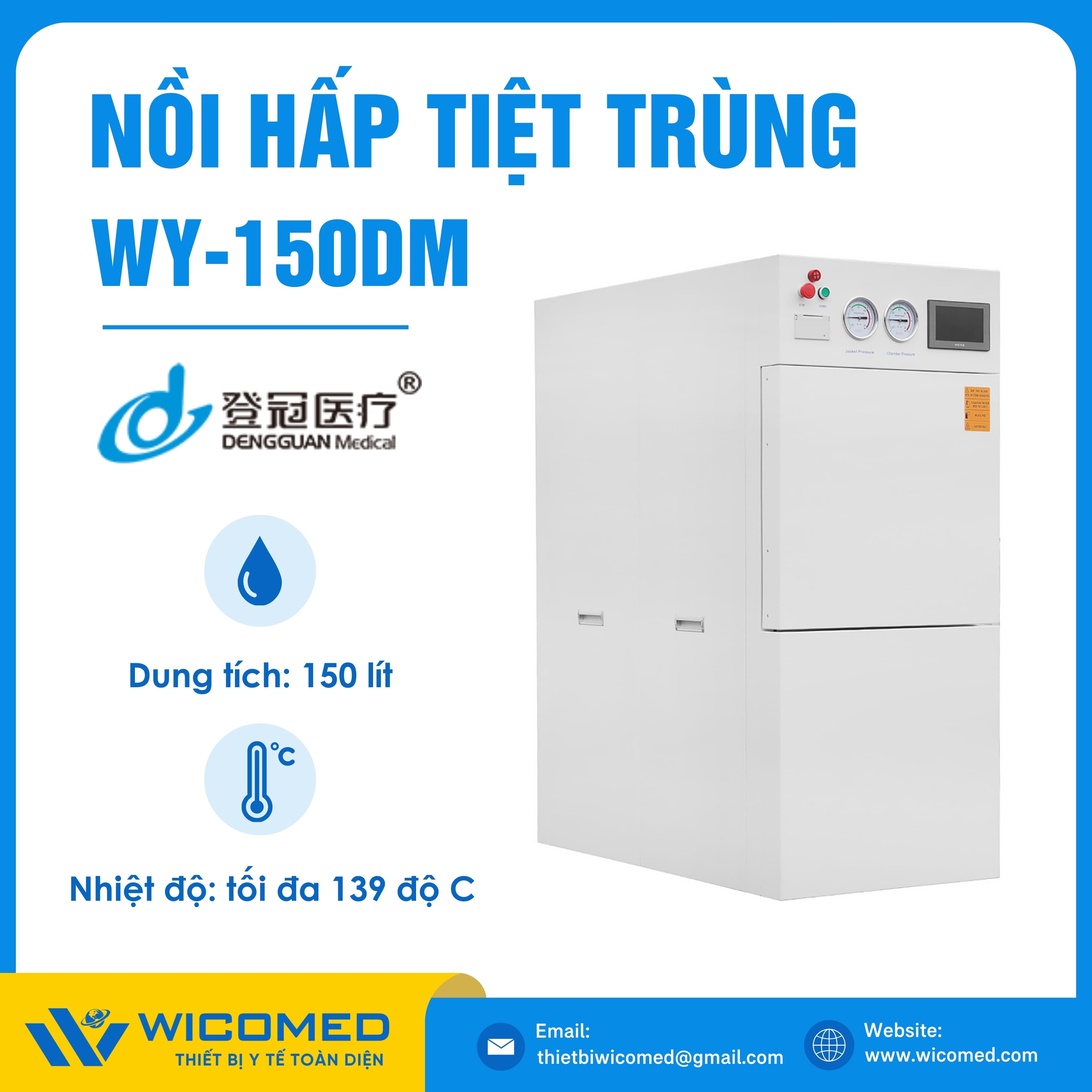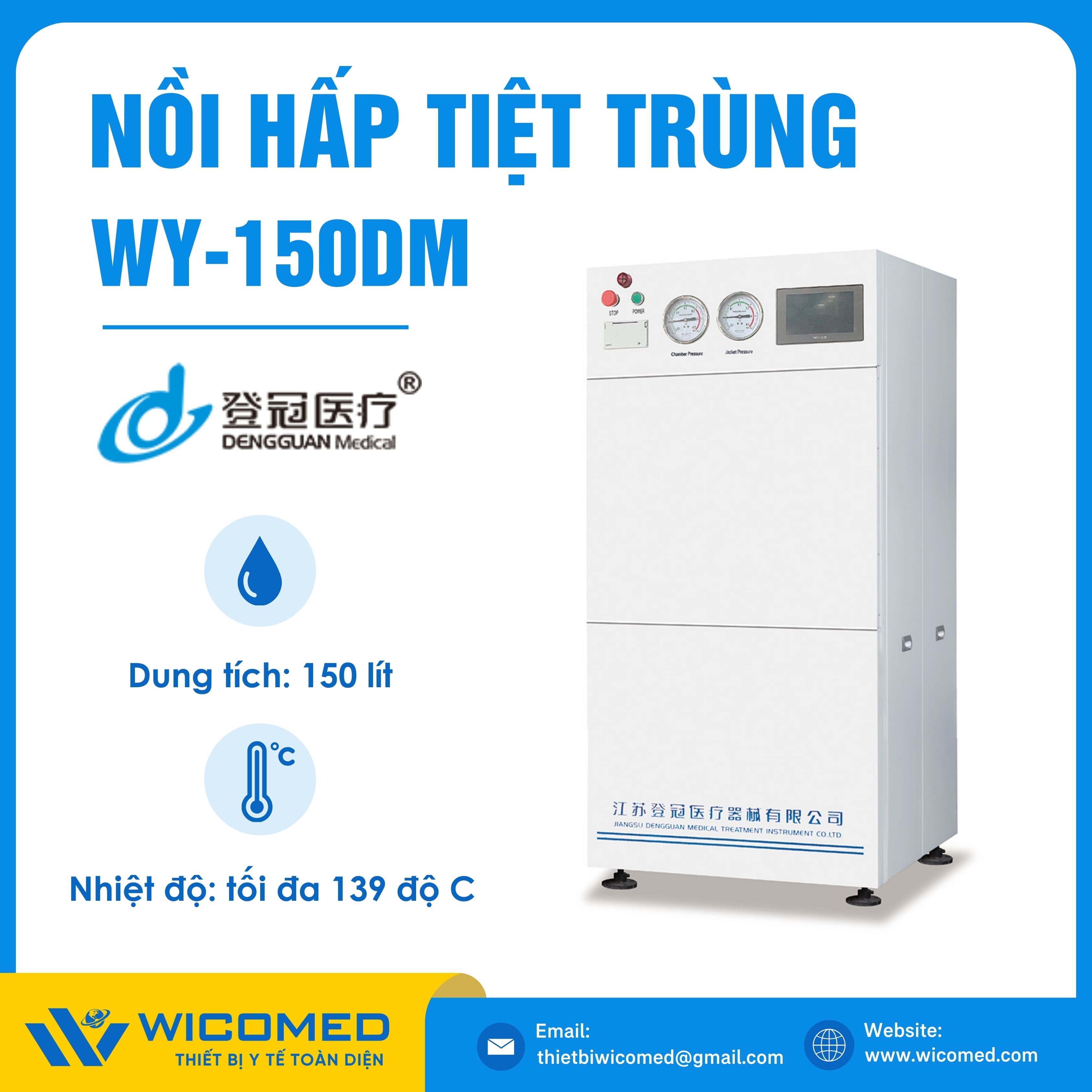 WY-150DM 🌟 Nồi hấp tiệt trùng Class N với dung tích 150 Lít, nhiệt độ tiệt trùng tối đa lên tới 138 độ C do hãng Dengguan - Trung Quốc sản xuất. Là thiết bị khử trùng tác nhân gây truyền nhiễm trên dụng cụ, thiết bị y tế, quần áo phẫu thuật,... Ứng dụng rộng rãi trong bệnh viện, phòng khám, trạm y tế,... Được nhập khẩu chính hãng bởi Wicomed. Bảo hành 12 tháng, cung cấp đầy đủ giấy tờ nhập khẩu đem đến uy tín và an tâm cho người sử dụng.