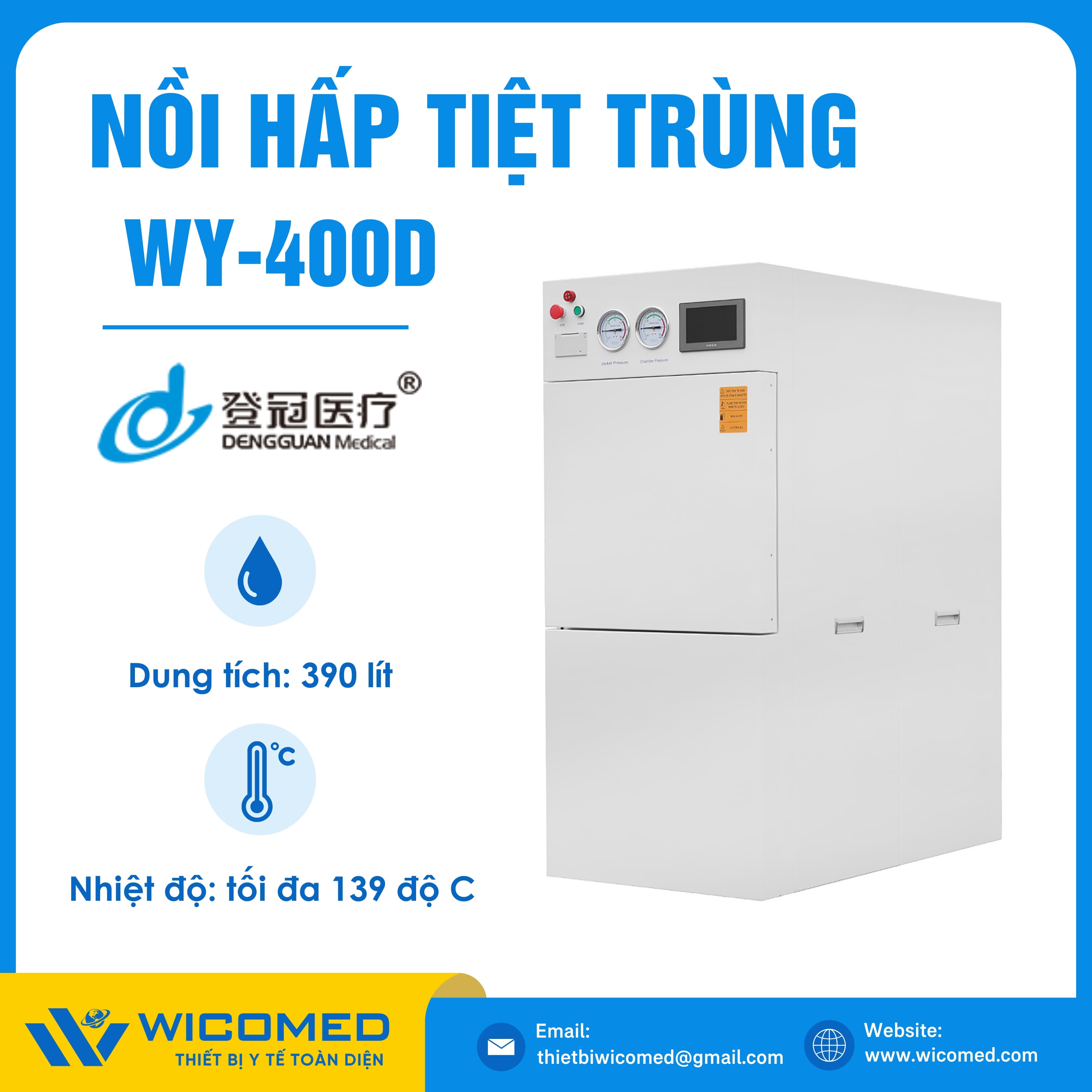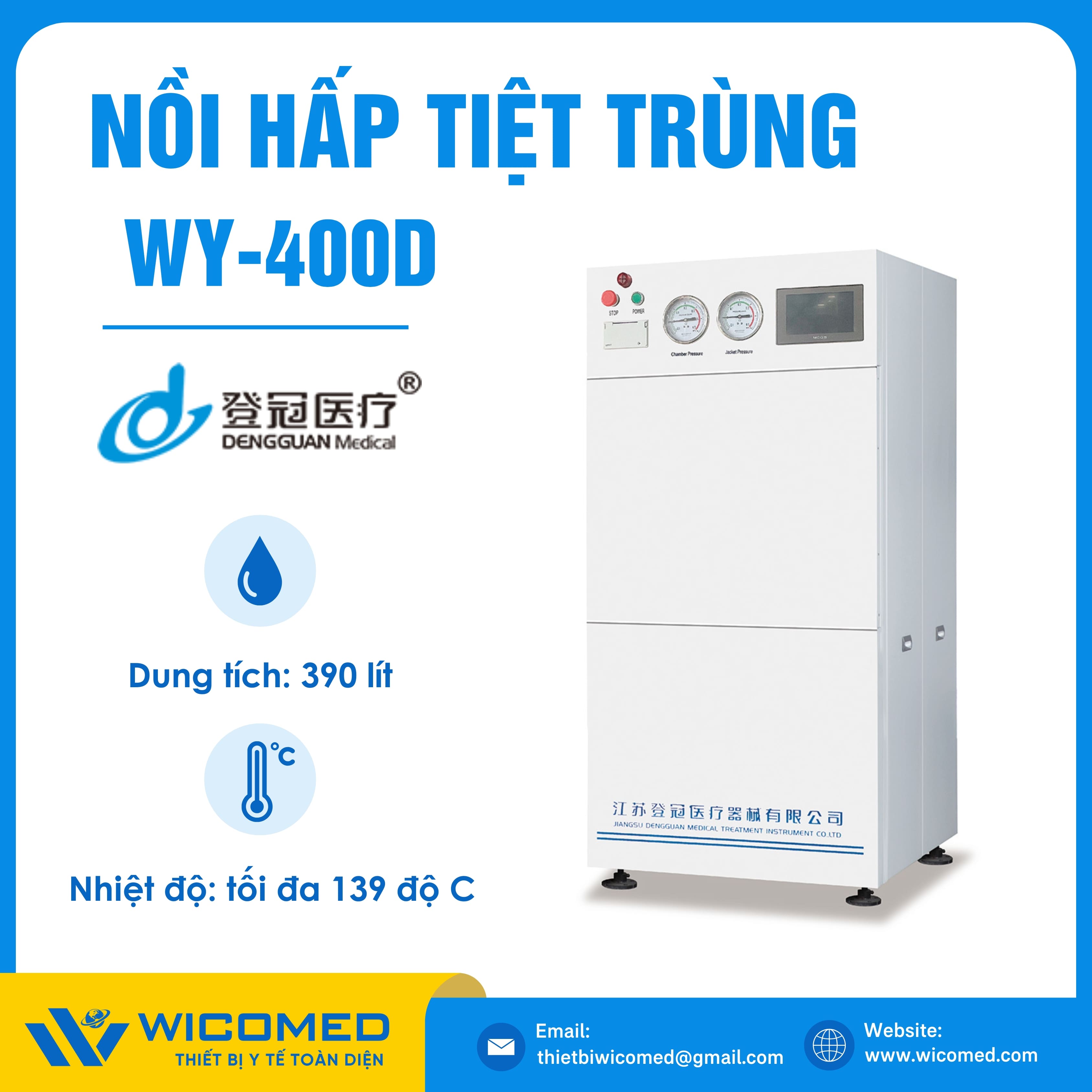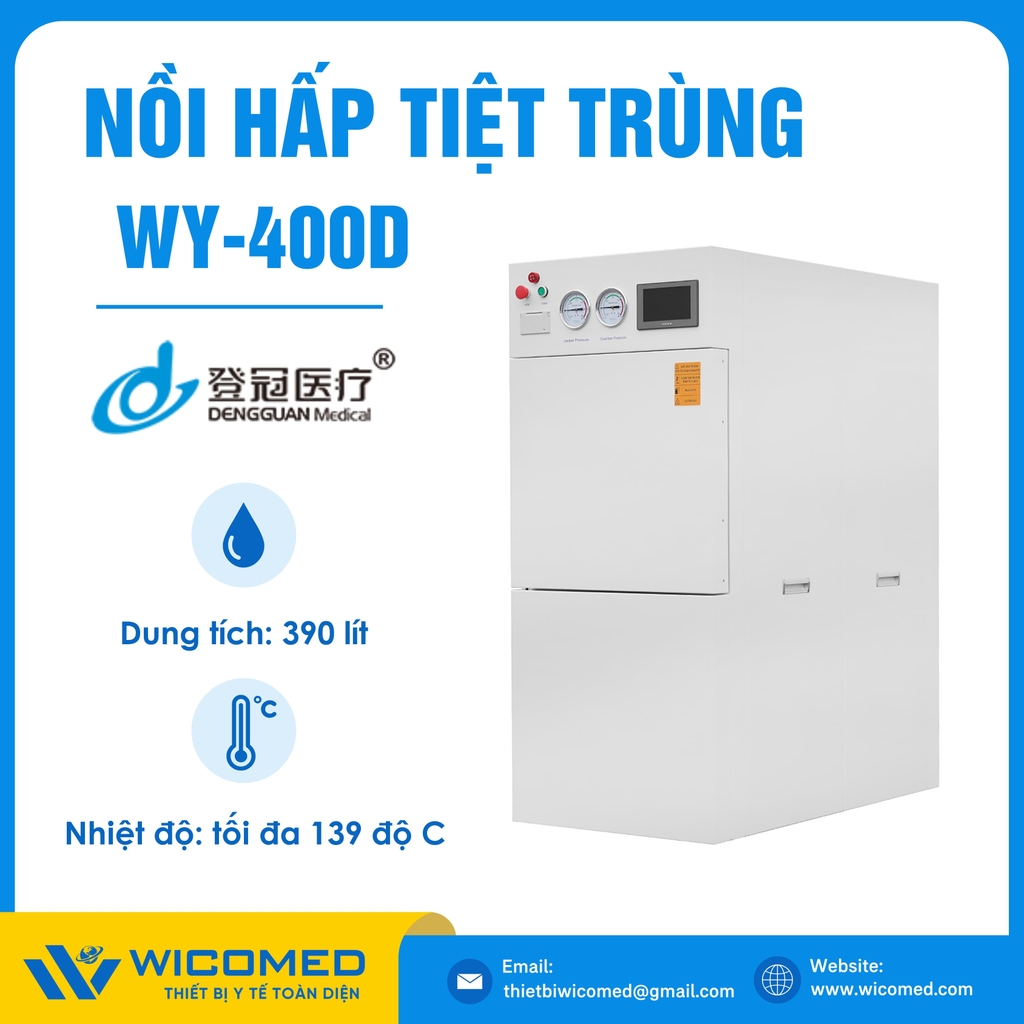 WY-400D 🌟 Nồi hấp tiệt trùng Class N với dung tích 370 Lít, nhiệt độ tiệt trùng tối đa lên tới 138 độ C do hãng Dengguan - Trung Quốc sản xuất. Là thiết bị khử trùng tác nhân gây truyền nhiễm trên dụng cụ, thiết bị y tế, quần áo phẫu thuật,... Ứng dụng rộng rãi trong bệnh viện, phòng khám, trạm y tế,... Được nhập khẩu chính hãng bởi Wicomed. Bảo hành 12 tháng, cung cấp đầy đủ giấy tờ nhập khẩu đem đến uy tín và an tâm cho người sử dụng.