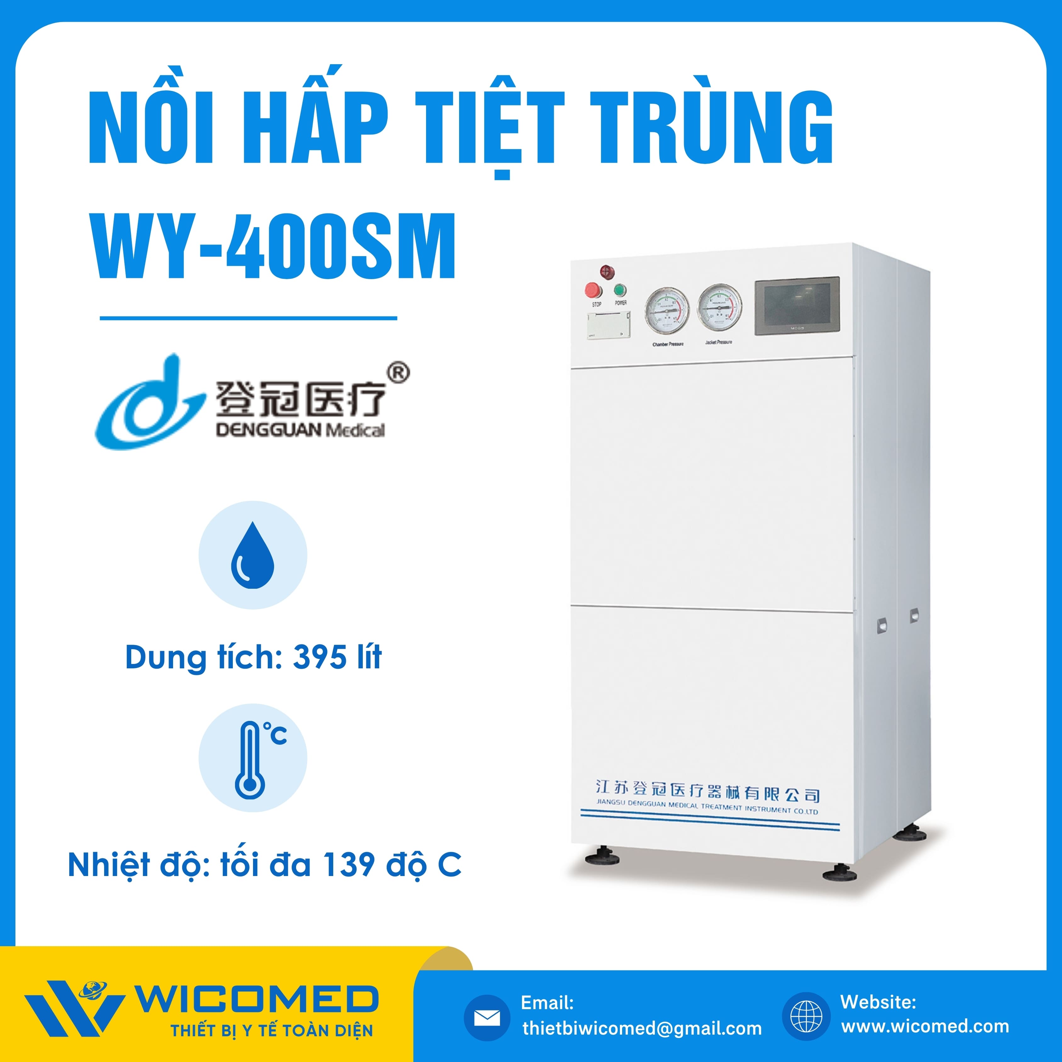 WY-400SM 🌟 Nồi hấp tiệt trùng Class N với dung tích 395 Lít, nhiệt độ tiệt trùng tối đa lên tới 138 độ C do hãng Dengguan - Trung Quốc sản xuất. Là thiết bị khử trùng tác nhân gây truyền nhiễm trên dụng cụ, thiết bị y tế, quần áo phẫu thuật,... Ứng dụng rộng rãi trong bệnh viện, phòng khám, trạm y tế,... Được nhập khẩu chính hãng bởi Wicomed. Bảo hành 12 tháng, cung cấp đầy đủ giấy tờ nhập khẩu đem đến uy tín và an tâm cho người sử dụng.