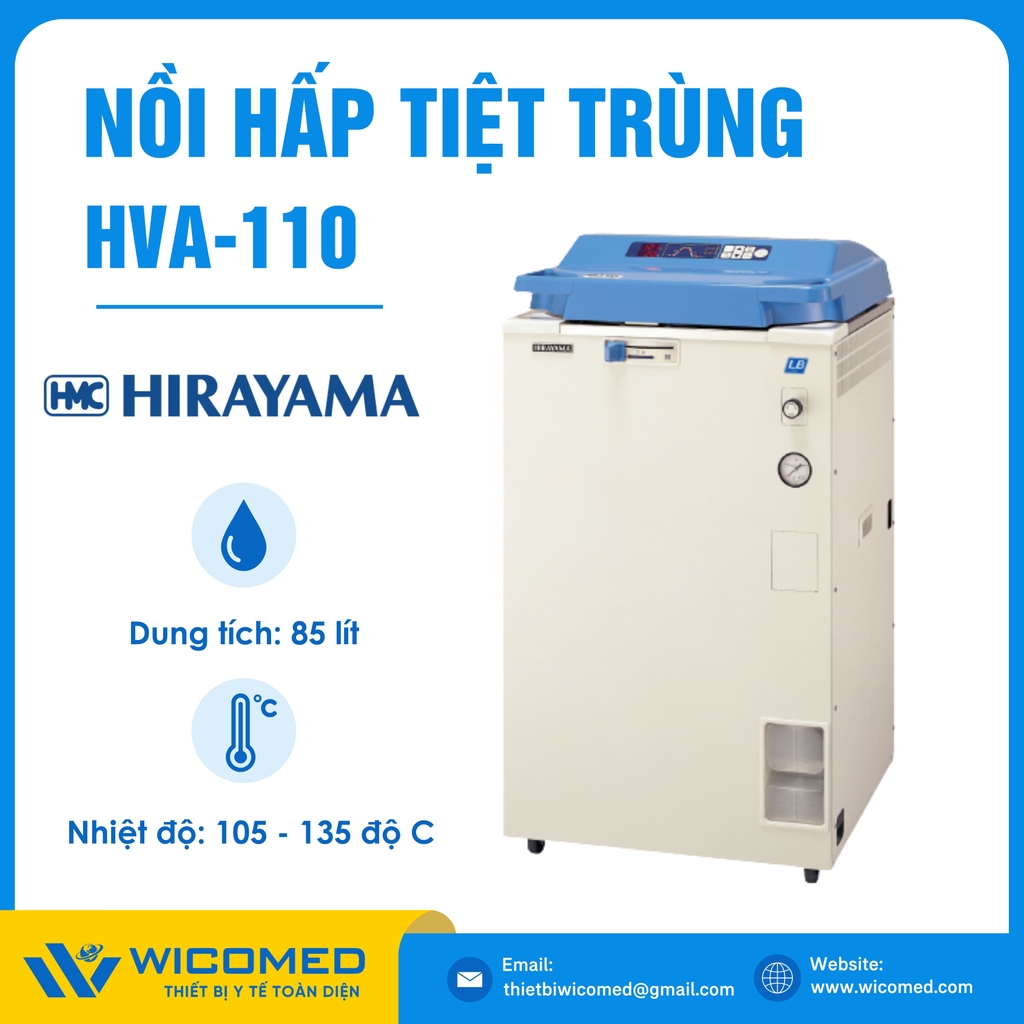 HVA-110 🌟 Nồi hấp tiệt trùng kiểu đứng với dung tích 110 Lít, nhiệt độ tiệt trùng tối đa lên tới 135 độ C do hãng Hirayama - Nhật Bản sản xuất. Là thiết bị khử trùng tác nhân gây truyền nhiễm trên dụng cụ, thiết bị y tế, quần áo phẫu thuật,... Ứng dụng rộng rãi trong bệnh viện, phòng khám, trạm y tế,... Được nhập khẩu chính hãng bởi Wicomed. Bảo hành 12 tháng, cung cấp đầy đủ giấy tờ nhập khẩu đem đến uy tín và an tâm cho người sử dụng.