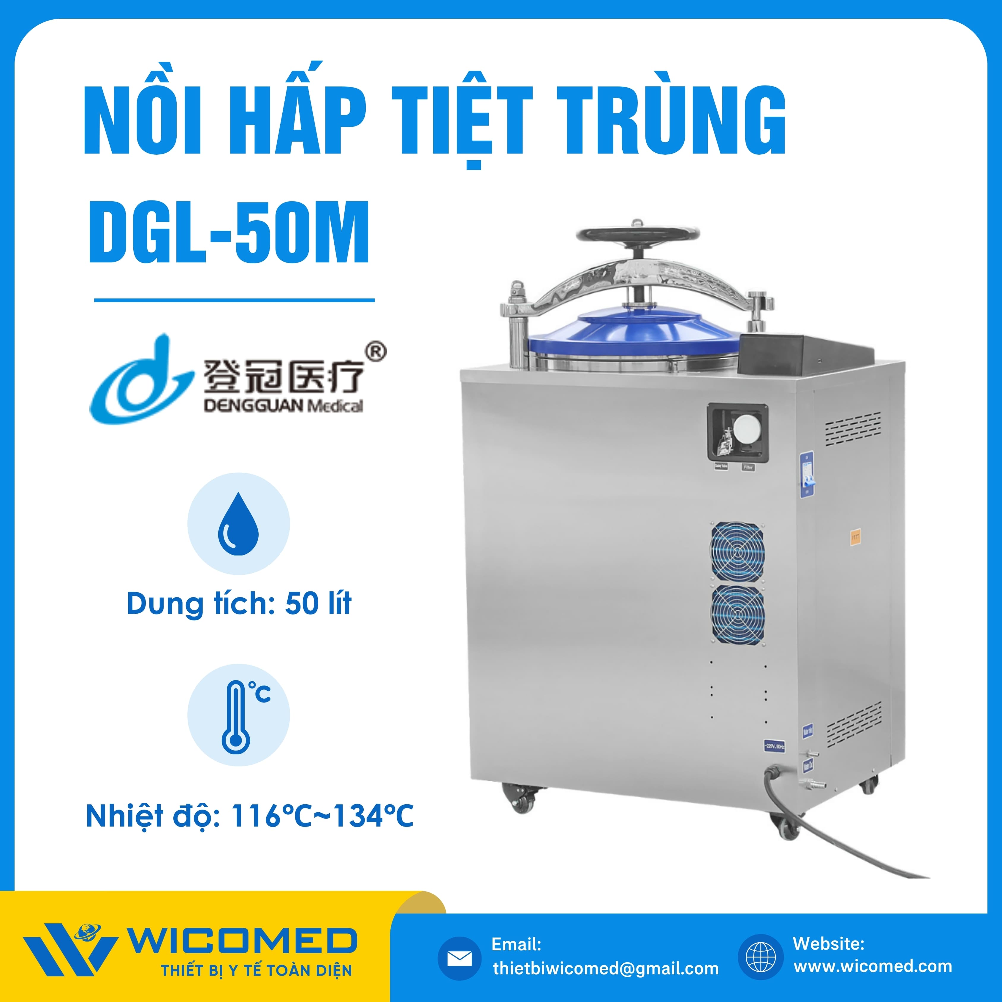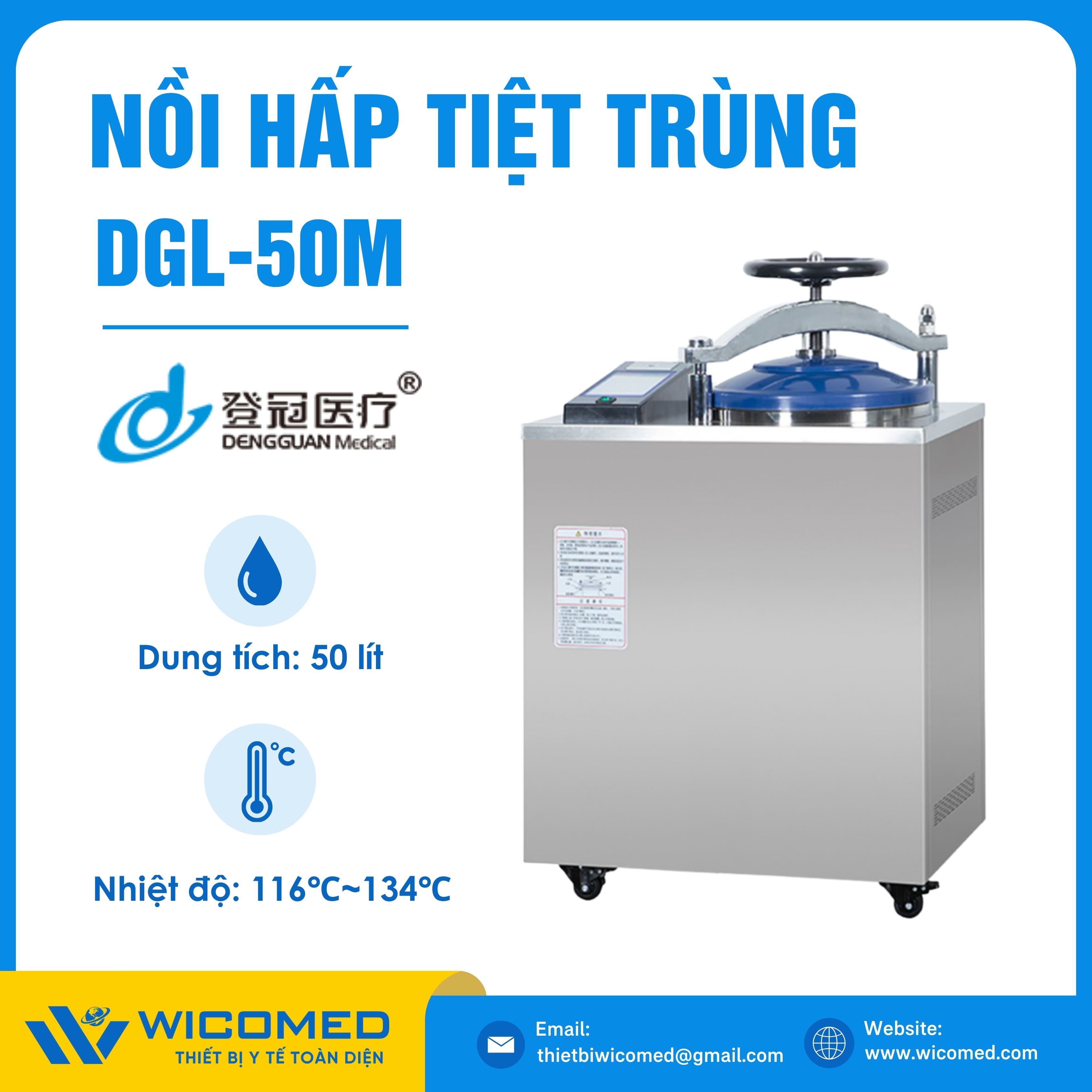 DGL-50M 🌟 Nồi hấp tiệt trùng kiểu đứng sấy chân không với dung tích 50 Lít, nhiệt độ tiệt trùng tối đa lên tới 134 độ C do hãng Dengguan - Trung Quốc sản xuất. Là thiết bị khử trùng tác nhân gây truyền nhiễm trên dụng cụ, thiết bị y tế, quần áo phẫu thuật,... Ứng dụng rộng rãi trong bệnh viện, phòng khám, trạm y tế,... Được nhập khẩu chính hãng bởi Wicomed. Bảo hành 12 tháng, cung cấp đầy đủ giấy tờ nhập khẩu đem đến uy tín và an tâm cho người sử dụng.