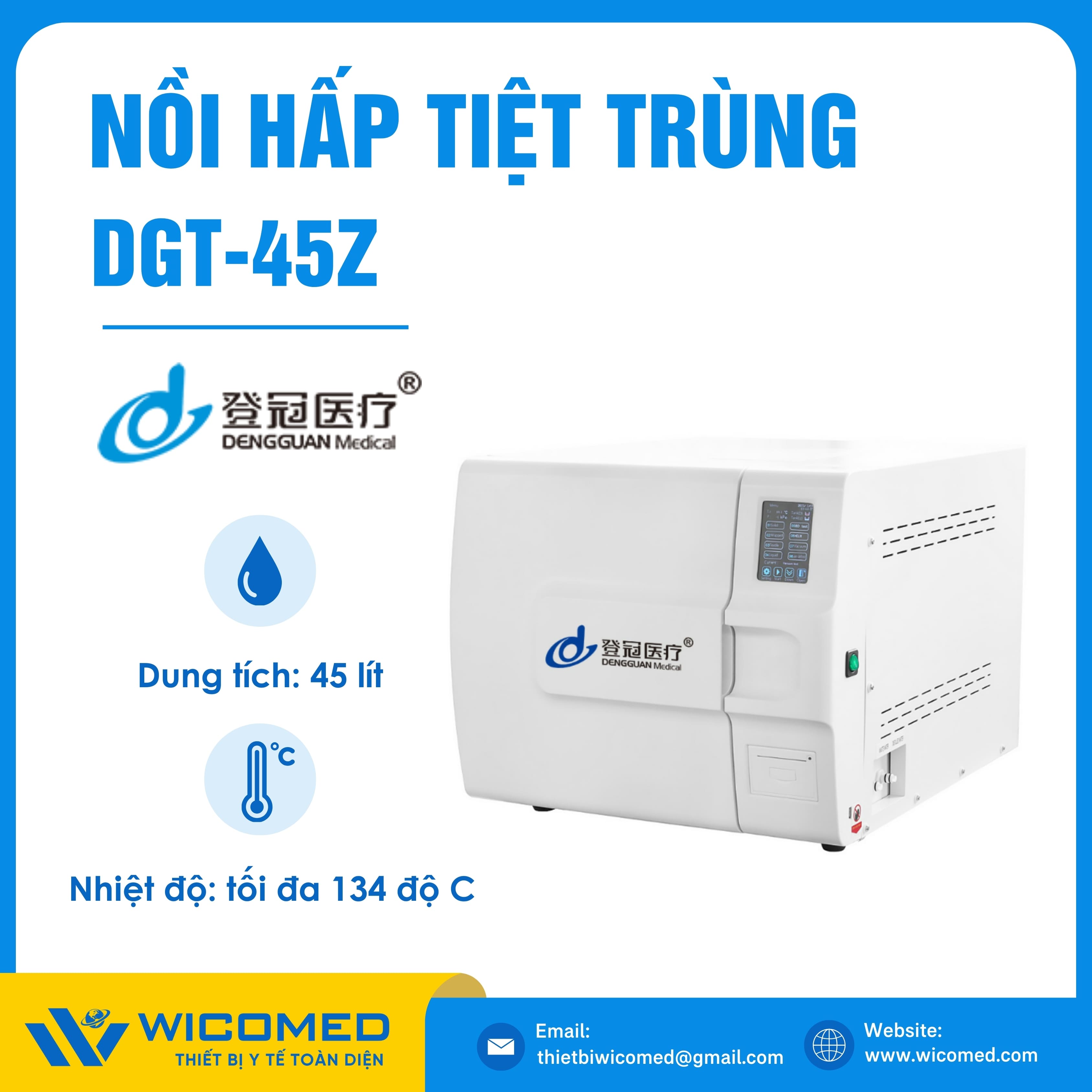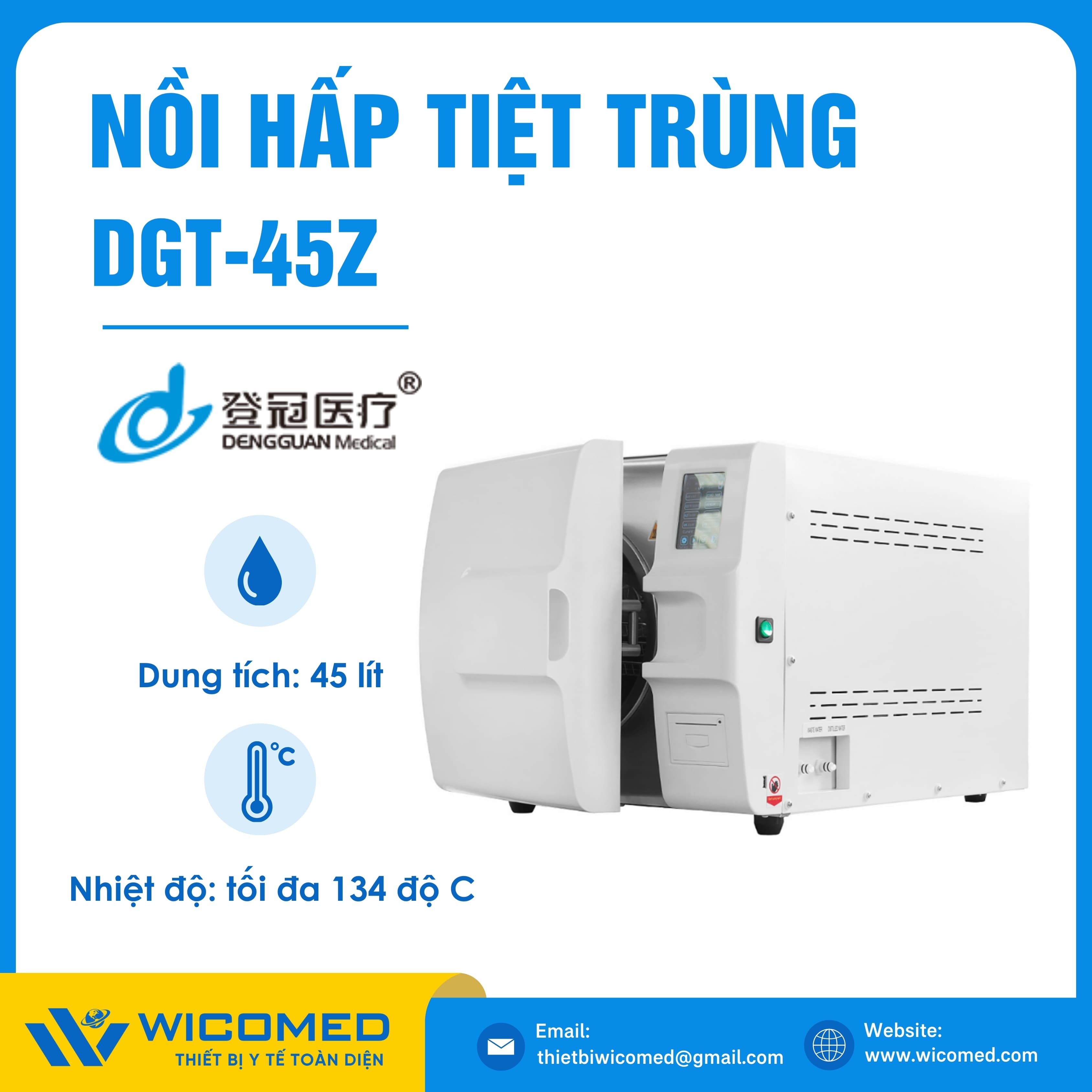 DGT-45Z 🌟 Nồi hấp tiệt trùng sấy chân không chuẩn Class B với dung tích 45 Lít, nhiệt độ tiệt trùng tối đa lên tới 134 độ C do hãng Dengguan - Trung Quốc sản xuất. Là thiết bị khử trùng tác nhân gây truyền nhiễm trên dụng cụ, thiết bị y tế, quần áo phẫu thuật,... Ứng dụng rộng rãi trong bệnh viện, phòng khám, trạm y tế,... Được nhập khẩu chính hãng bởi Wicomed. Bảo hành 12 tháng, cung cấp đầy đủ giấy tờ nhập khẩu đem đến uy tín và an tâm cho người sử dụng.