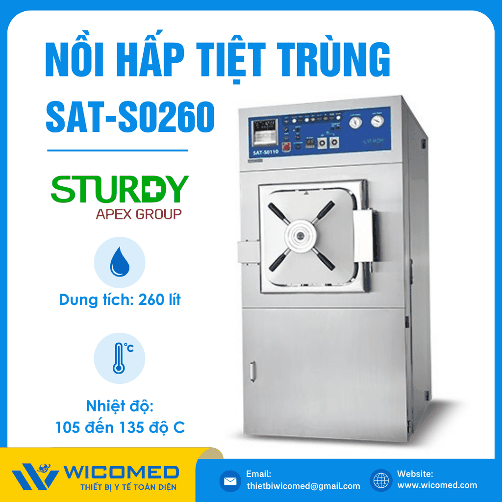 SAT-S0260 🌟 Nồi hấp tiệt trùng buồng hấp vuông dung tích 260 lít, được hãng Sturdy thiết kế theo kiểu tủ đứng dễ dàng thao tác. Bộ điều khiển kỹ thuật số, tính năng tạo chân không trước quá trình tiệt trùng và sấy khô bằng chân không sau quá trình tiệt trùng. Được nhập khẩu chính hãng bởi Wicomed. Bảo hành 12 tháng, cung cấp đầy đủ giấy tờ nhập khẩu đem đến uy tín và an tâm cho người sử dụng
