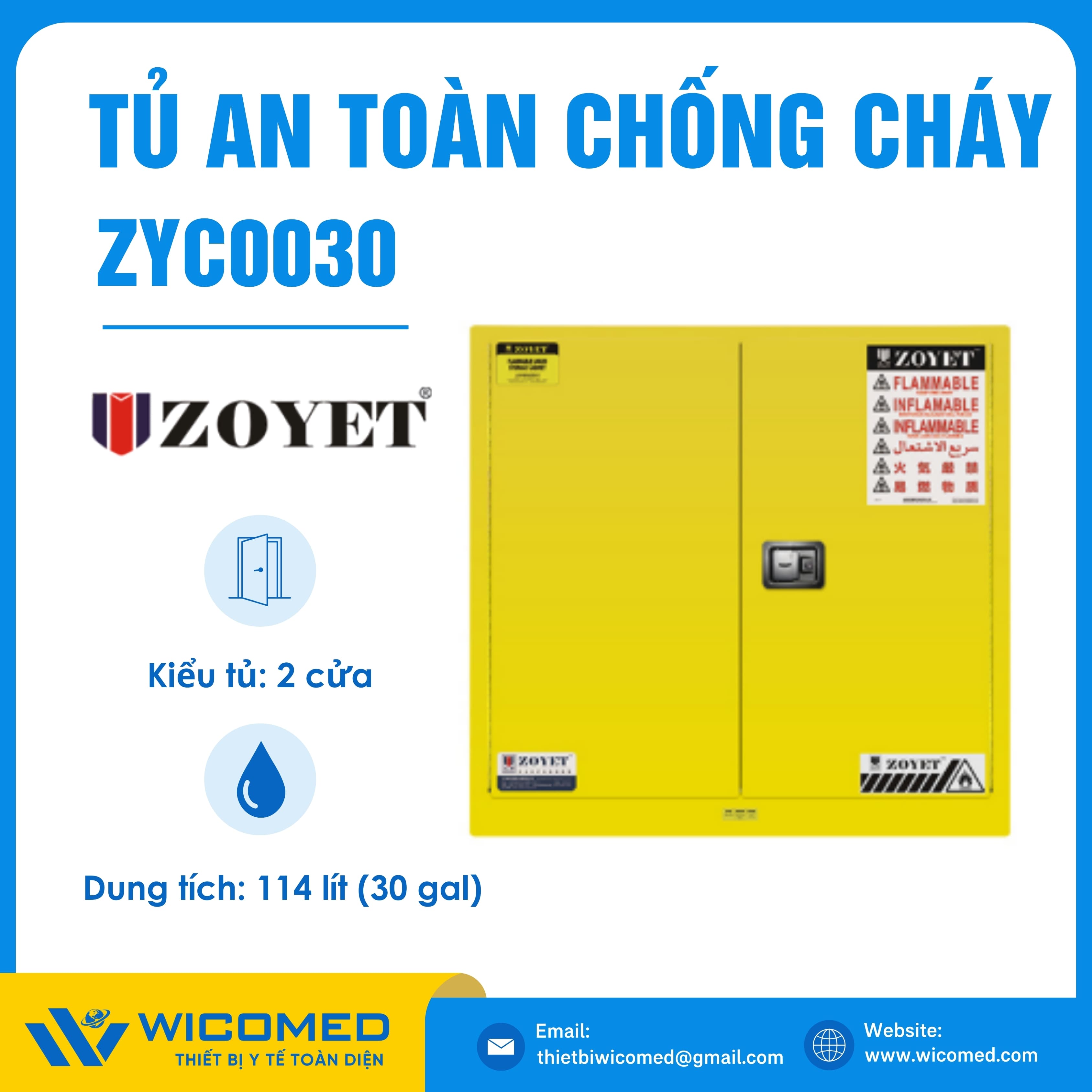 ZYC0030 🌟 Tủ an toàn chống cháy 2 cửa với dung tích 114 lít (30 gal) do hãng Zoyet - Trung Quốc sản xuất. Là thiết bị chuyên dụng để lưu trữ các chất dễ cháy, dễ nổ, độc hại hoặc các vật phẩm có giá trị cao, đảm bảo mang lại sự bảo vệ an toàn ở mức cao nhất. Được nhập khẩu chính hãng bởi Wicomed. Bảo hành 12 tháng, cung cấp đầy đủ giấy tờ nhập khẩu đem đến uy tín và an tâm cho người sử dụng.