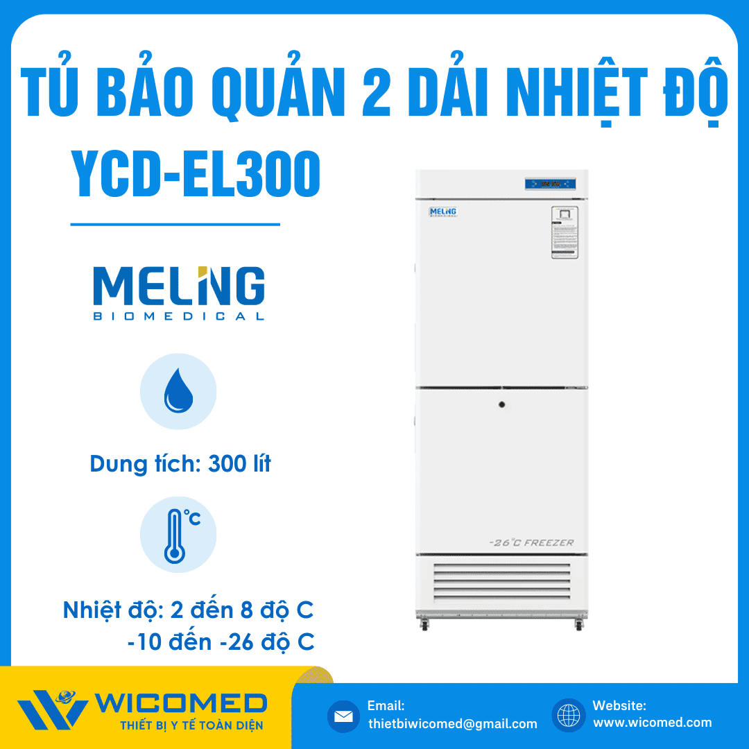 YCD-EL300🌟Tủ chuyên dụng bảo quản 2 dải nhiệt độ mát và âm sâu với dung tích 300 lít do hãng Meling - Trung Quốc sản xuất, sử dụng rộng rãi trong kho dược, công ty dược phẩm, bệnh viên, trung tâm y tế dự phòng và các viện nghiên cứu,…. Được nhập khẩu chính hãng bởi Wicomed. Bảo hành 12 tháng, cung cấp đầy đủ giấy tờ nhập khẩu đem đến uy tín và an tâm cho người sử dụng.