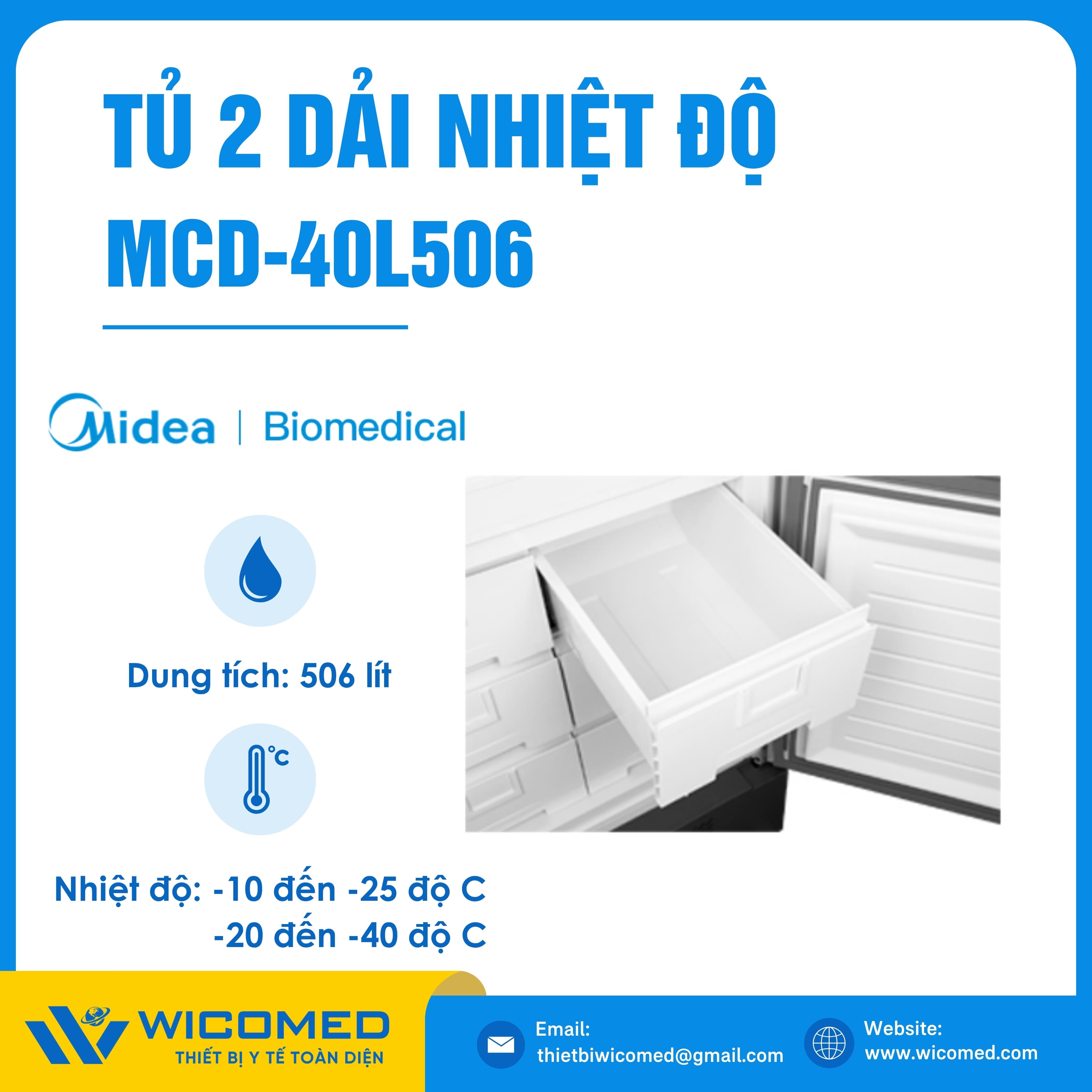 MCD-40L506🌟Tủ chuyên dụng bảo quản 2 dải nhiệt độ mát và âm sâu với dung tích 506 lít do hãng Midea - Trung Quốc sản xuất, sử dụng rộng rãi trong kho dược, công ty dược phẩm, bệnh viên, trung tâm y tế dự phòng và các viện nghiên cứu,…. Được nhập khẩu chính hãng bởi Wicomed. Bảo hành 12 tháng, cung cấp đầy đủ giấy tờ nhập khẩu đem đến uy tín và an tâm cho người sử dụng.