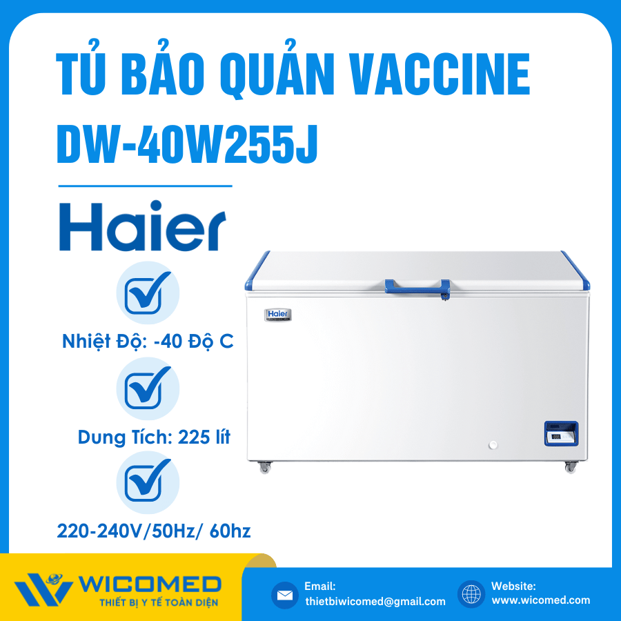 Tủ DW-40W255J ⭐ tủ bảo quản do hãng Haier BioMedical (đạt tiêu chuẩn WHO, GPM, ISO, CE...) thiết kế và chế tạo. Với dung tích 255 lít, thiết kể kiểu tủ ngang, cửa trên dễ dàng sử dụng. Dải nhiệt độ có thể điều chỉnh từ -20~ -40 độ C. Được nhập khẩu chính hãng bởi Wicomed. Bảo hành 12 tháng, cung cấp đầy đủ giấy tờ nhập khẩu đem đến uy tín và an tâm cho người sử dụng.