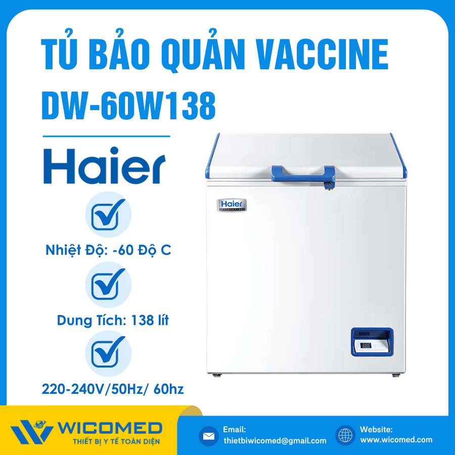 Tủ DW-60W258 ⭐ tủ bảo quản do hãng Haier BioMedical (đạt tiêu chuẩn WHO, GPM, ISO, CE...) thiết kế và chế tạo. Với dung tích 258 lít, thiết kể kiểu tủ ngang, cửa trên dễ dàng sử dụng. Dải nhiệt độ có thể điều chỉnh từ -30~ -60 độ C. Được nhập khẩu chính hãng bởi Wicomed. Bảo hành 12 tháng, cung cấp đầy đủ giấy tờ nhập khẩu đem đến uy tín và an tâm cho người sử dụng.